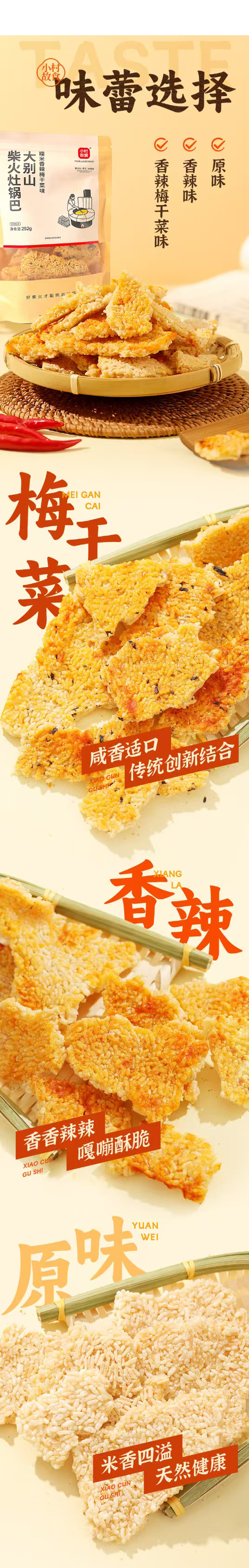【大别山特产】农家手工柴火锅巴 传统老灶锅巴 嘎嘣脆 糯米香辣/梅干菜/原味三袋组合 100g/袋
