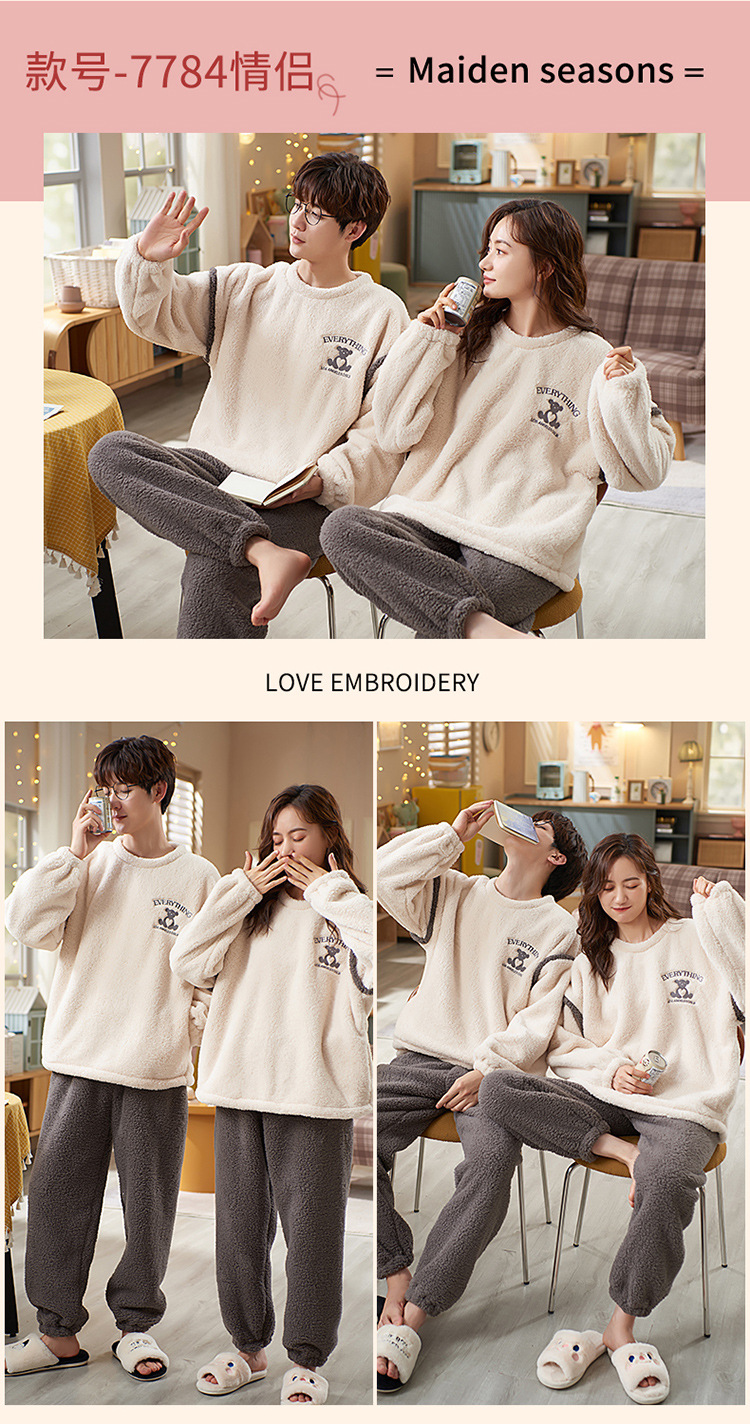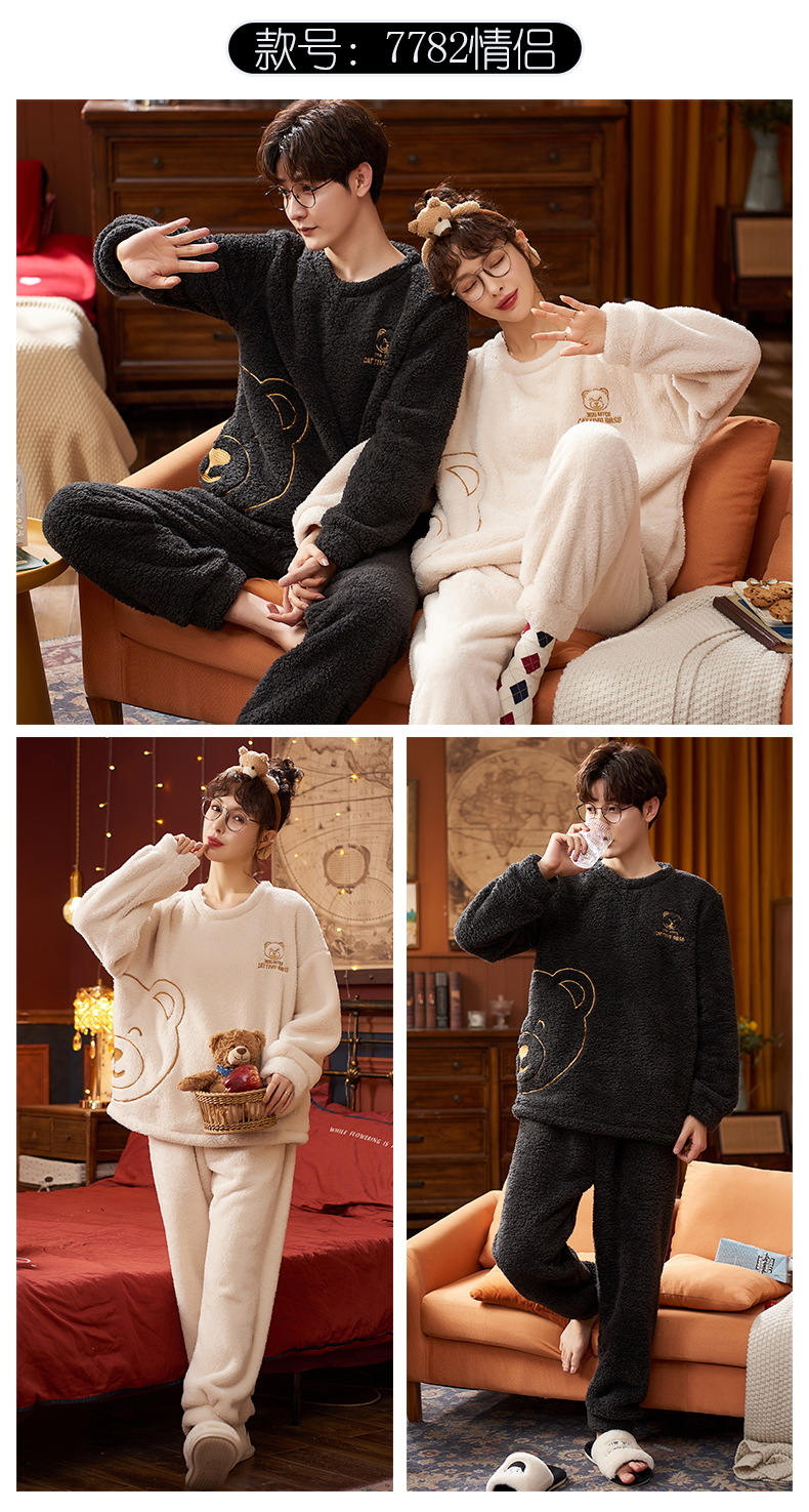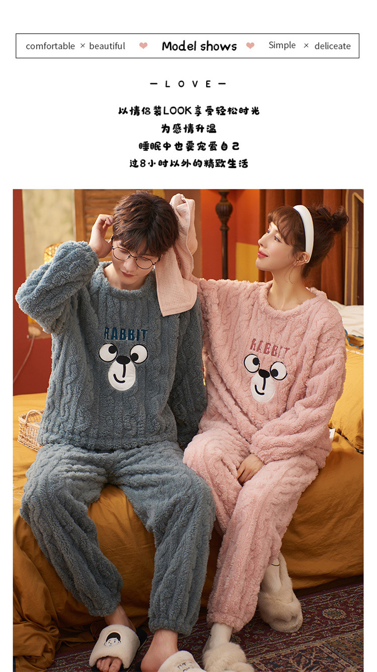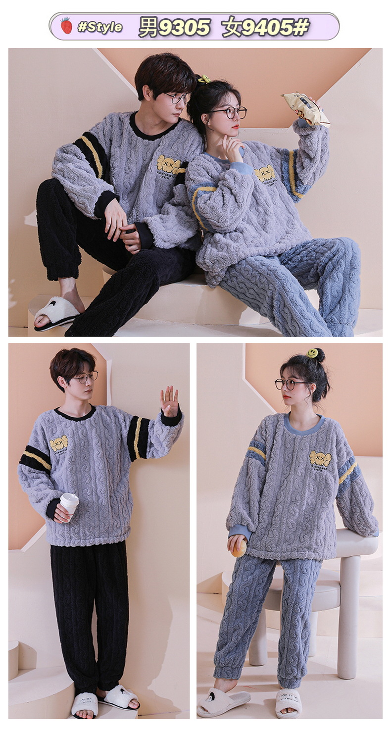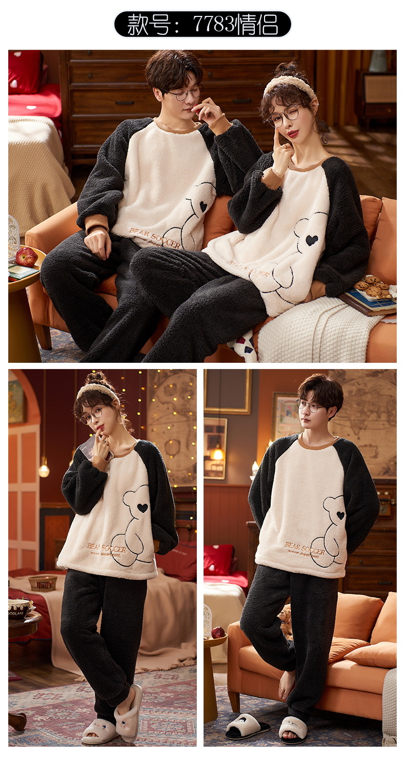 【健康好棉质 温暖冬日】珊瑚绒情侣睡衣秋冬款加厚保暖男睡衣女冬季柔软法兰绒御寒家居服套装