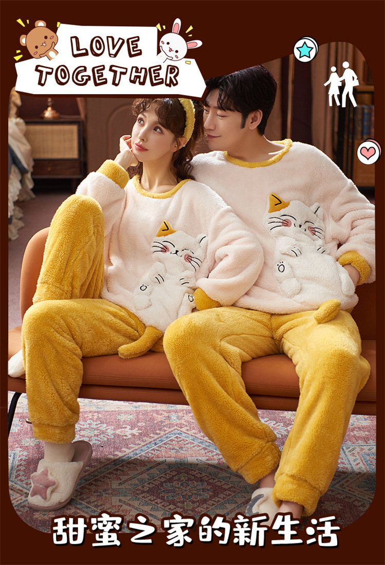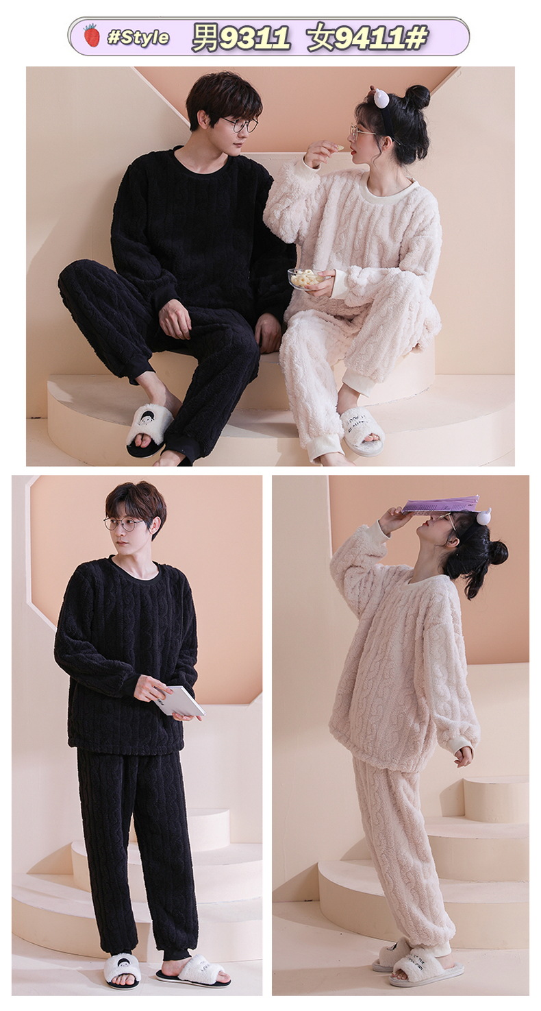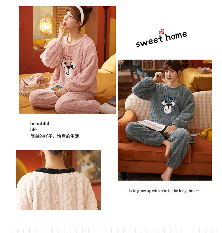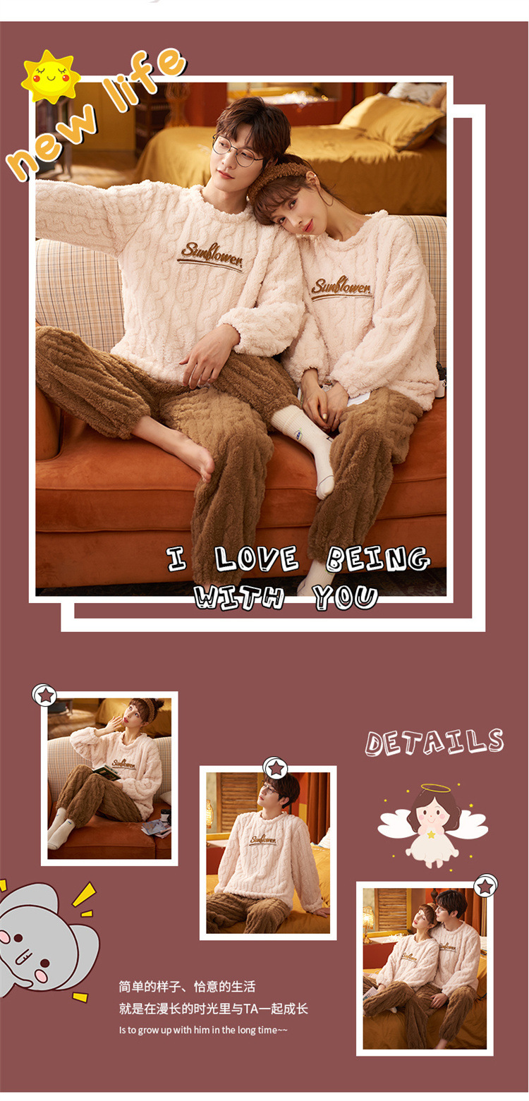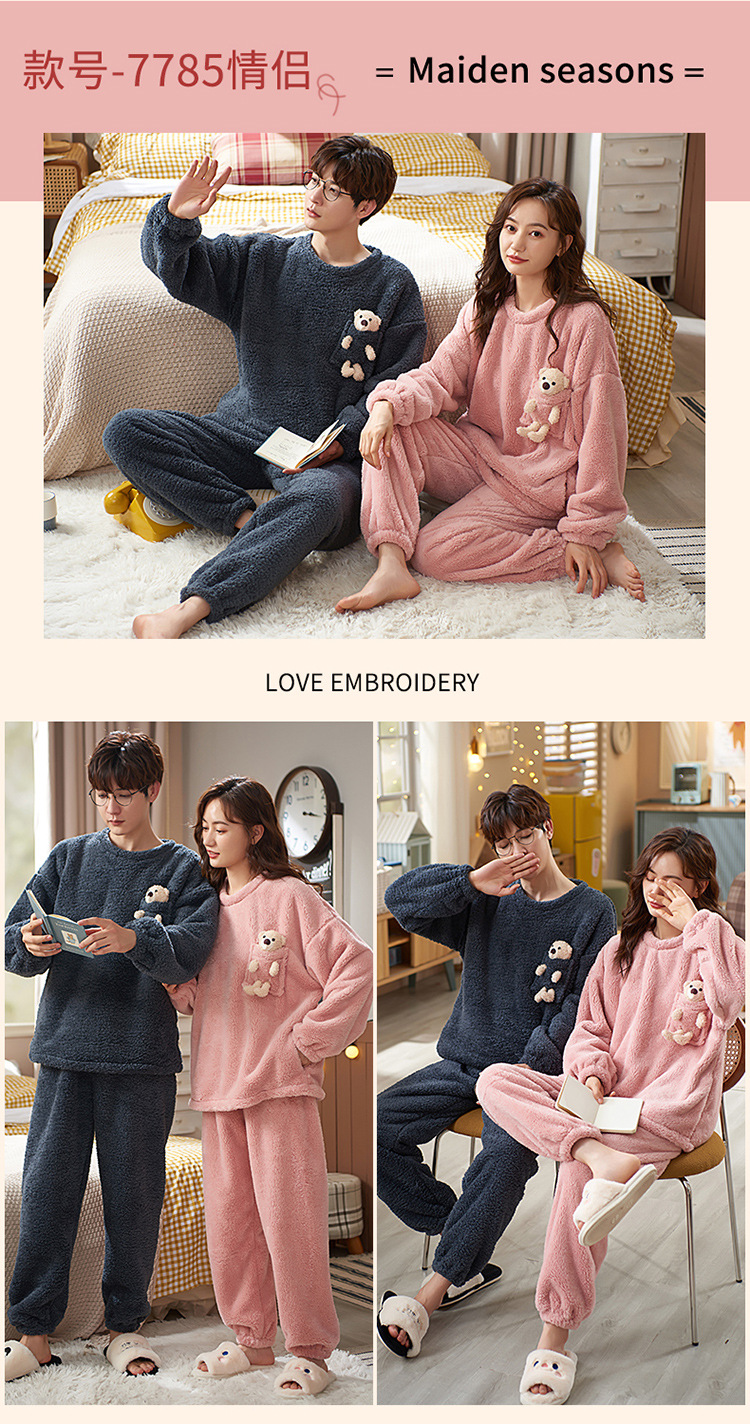 【健康好棉质 温暖冬日】珊瑚绒情侣睡衣秋冬款加厚保暖男睡衣女冬季柔软法兰绒御寒家居服套装