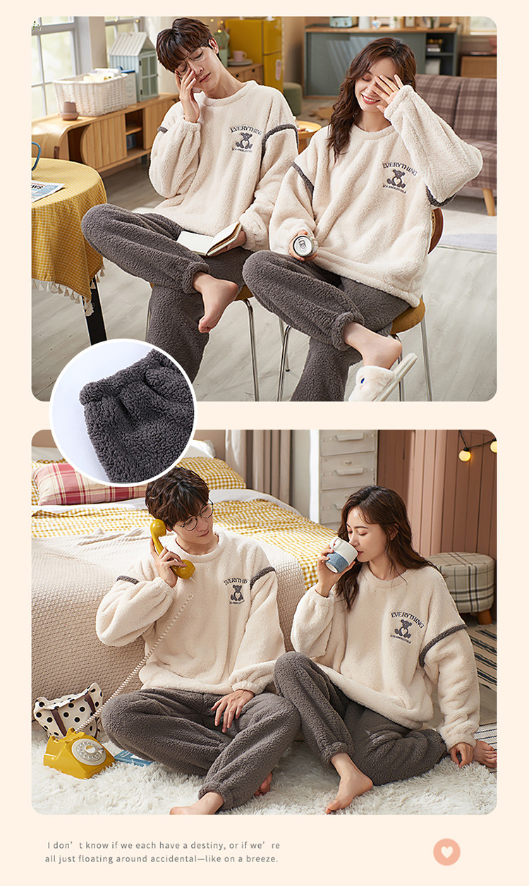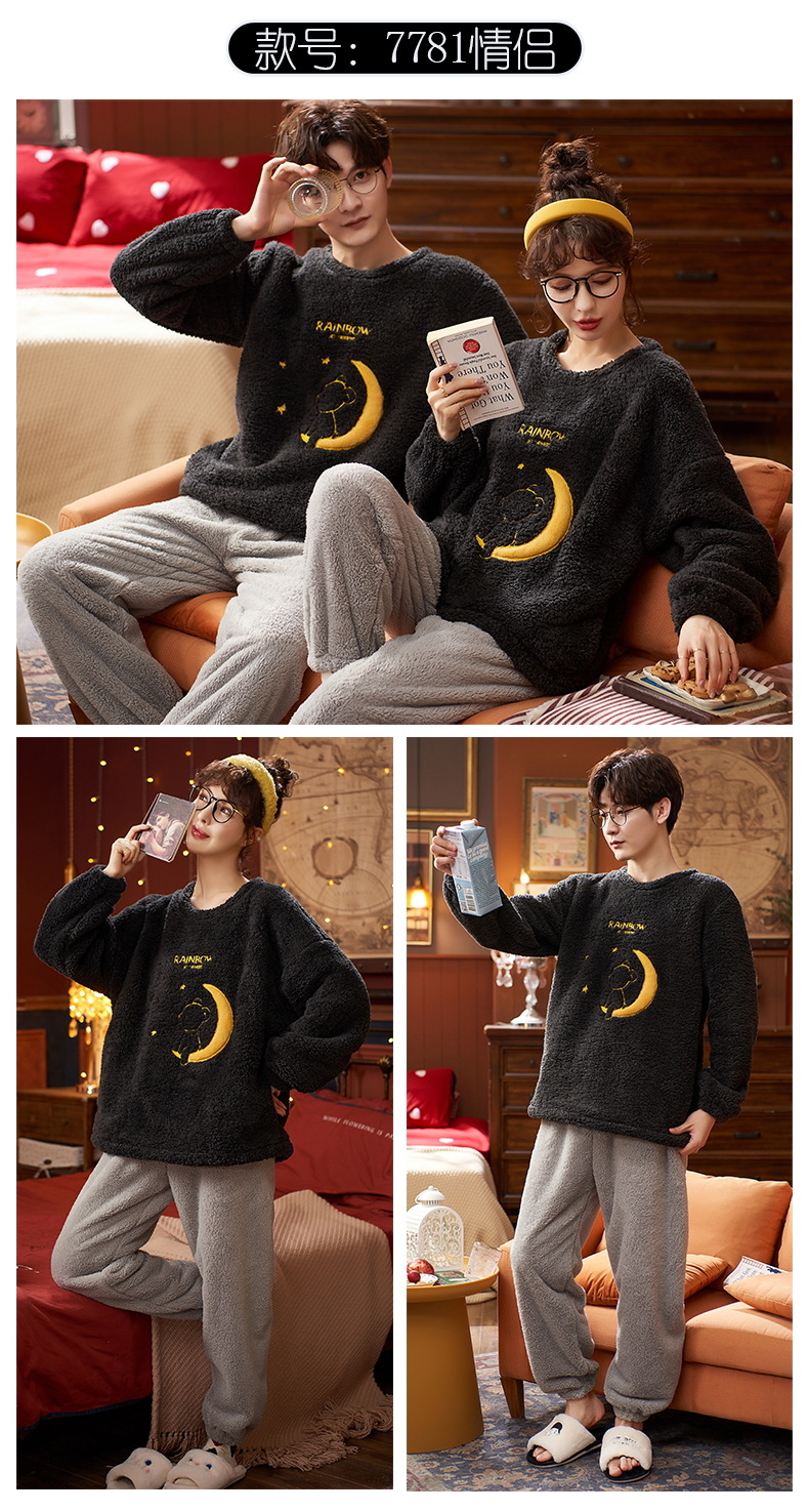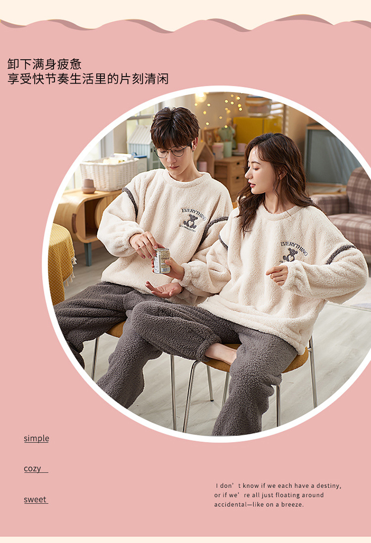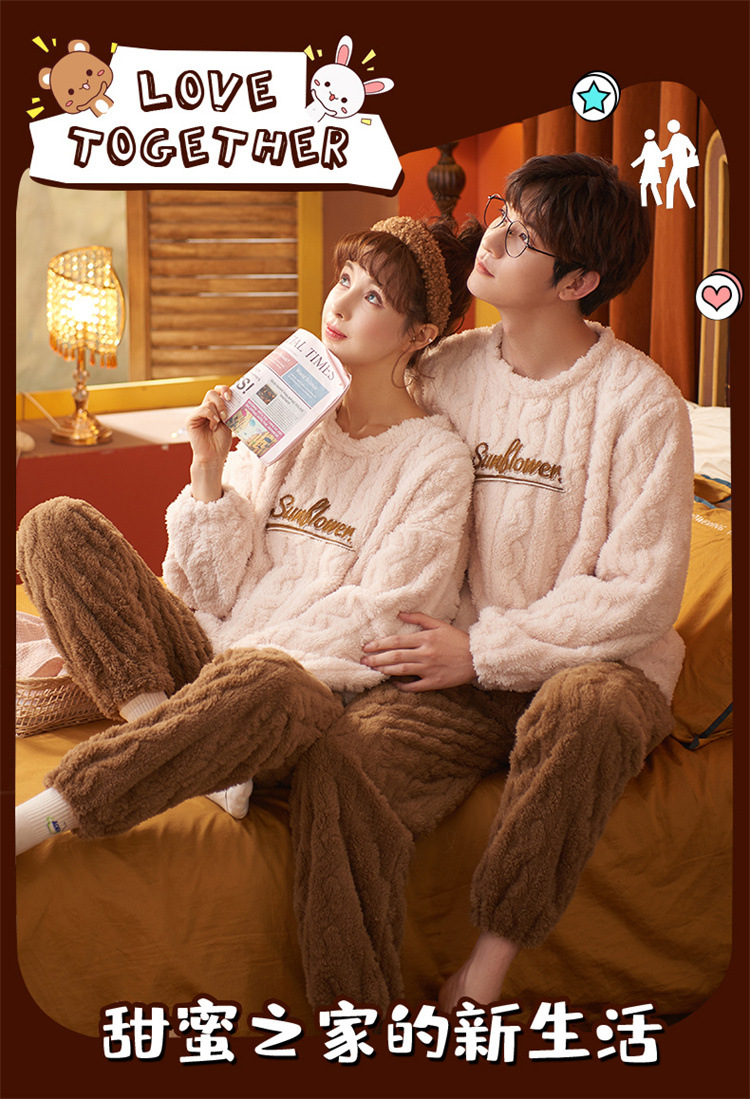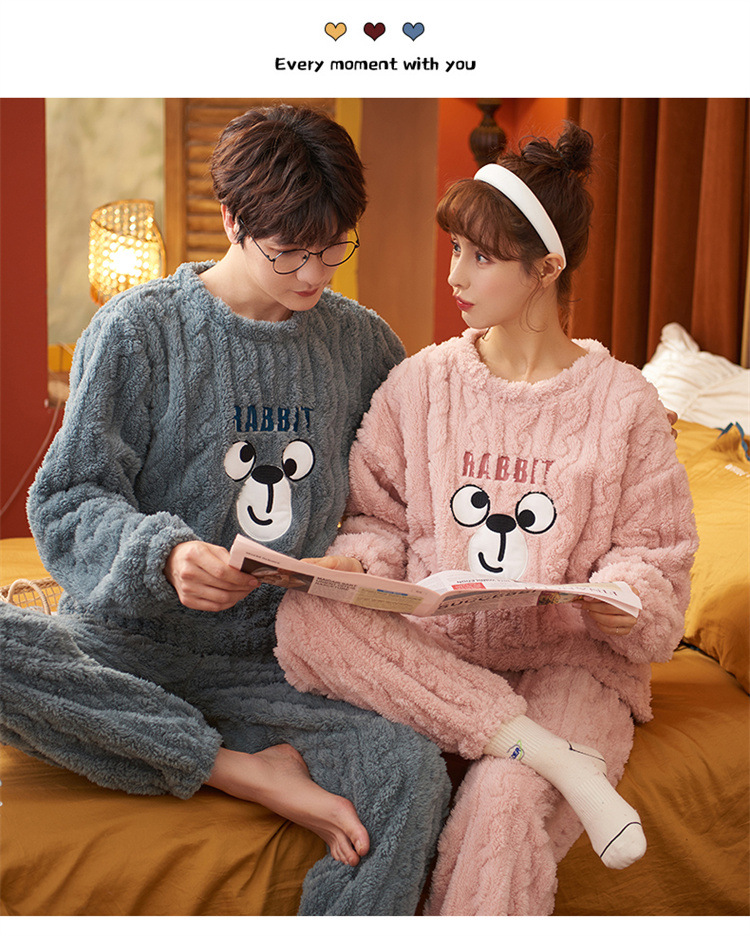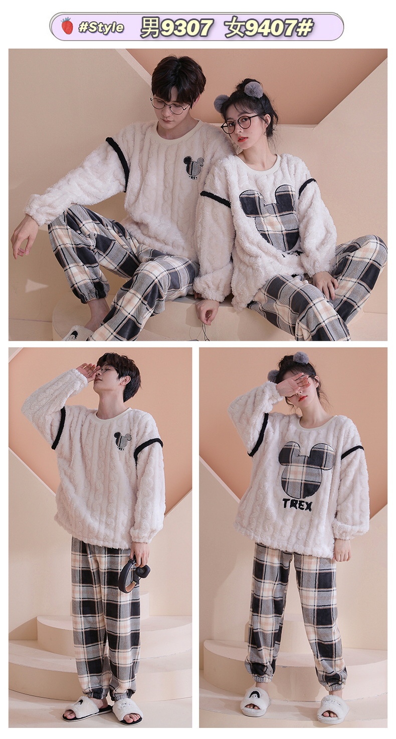 【健康好棉质 温暖冬日】珊瑚绒情侣睡衣秋冬款加厚保暖男睡衣女冬季柔软法兰绒御寒家居服套装