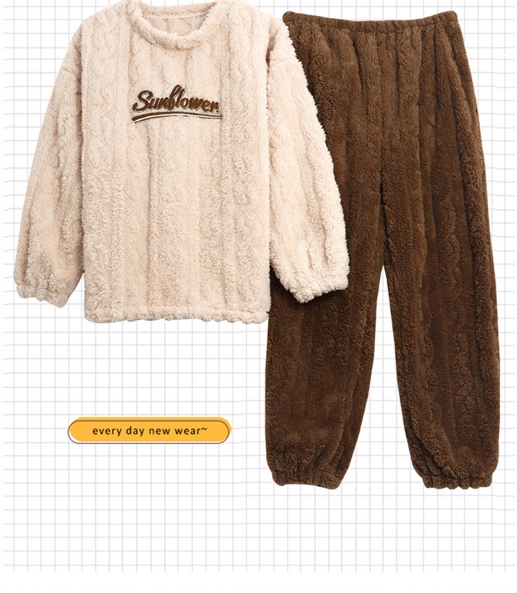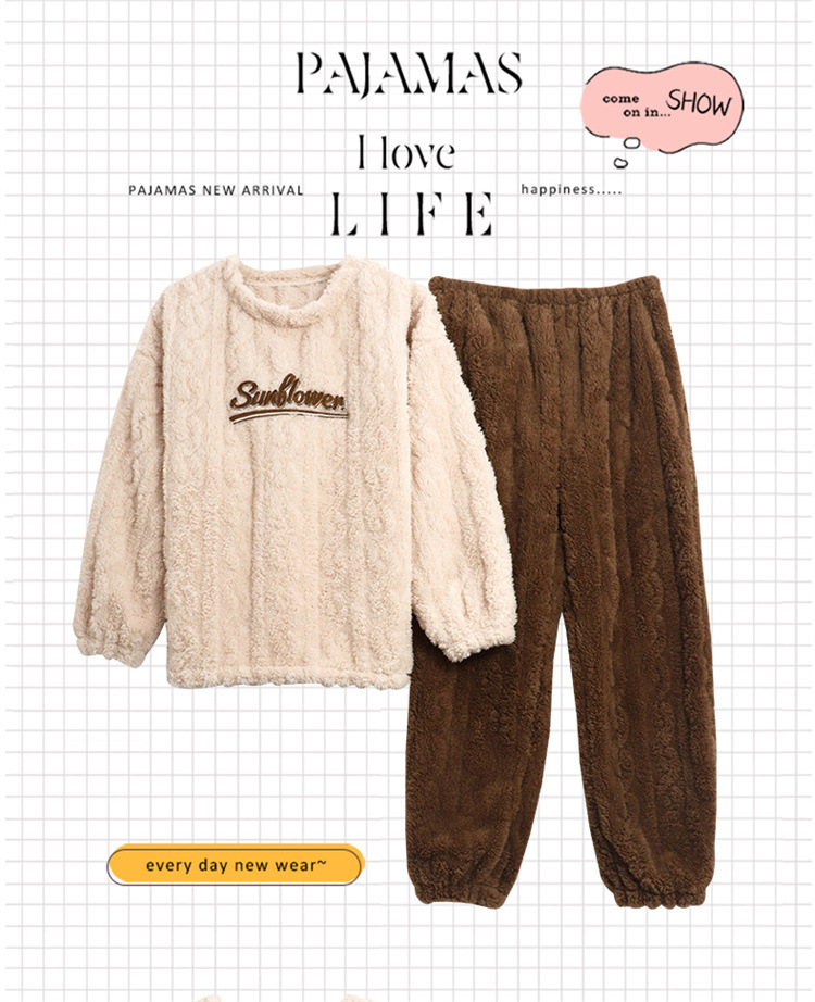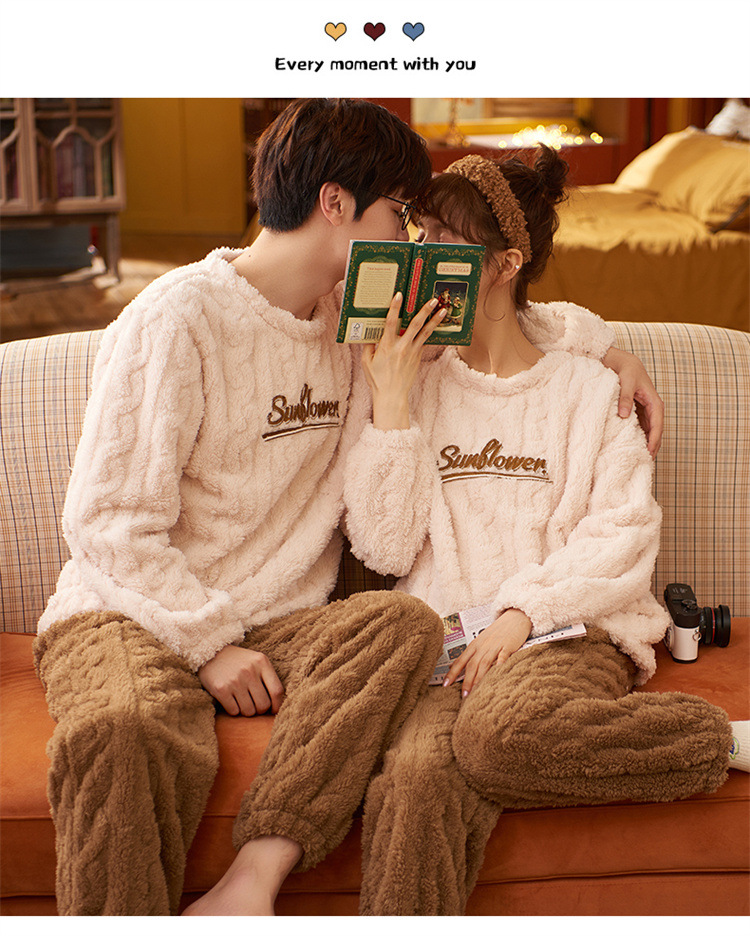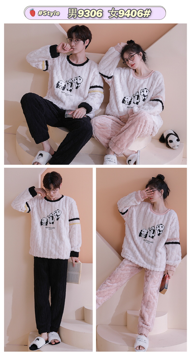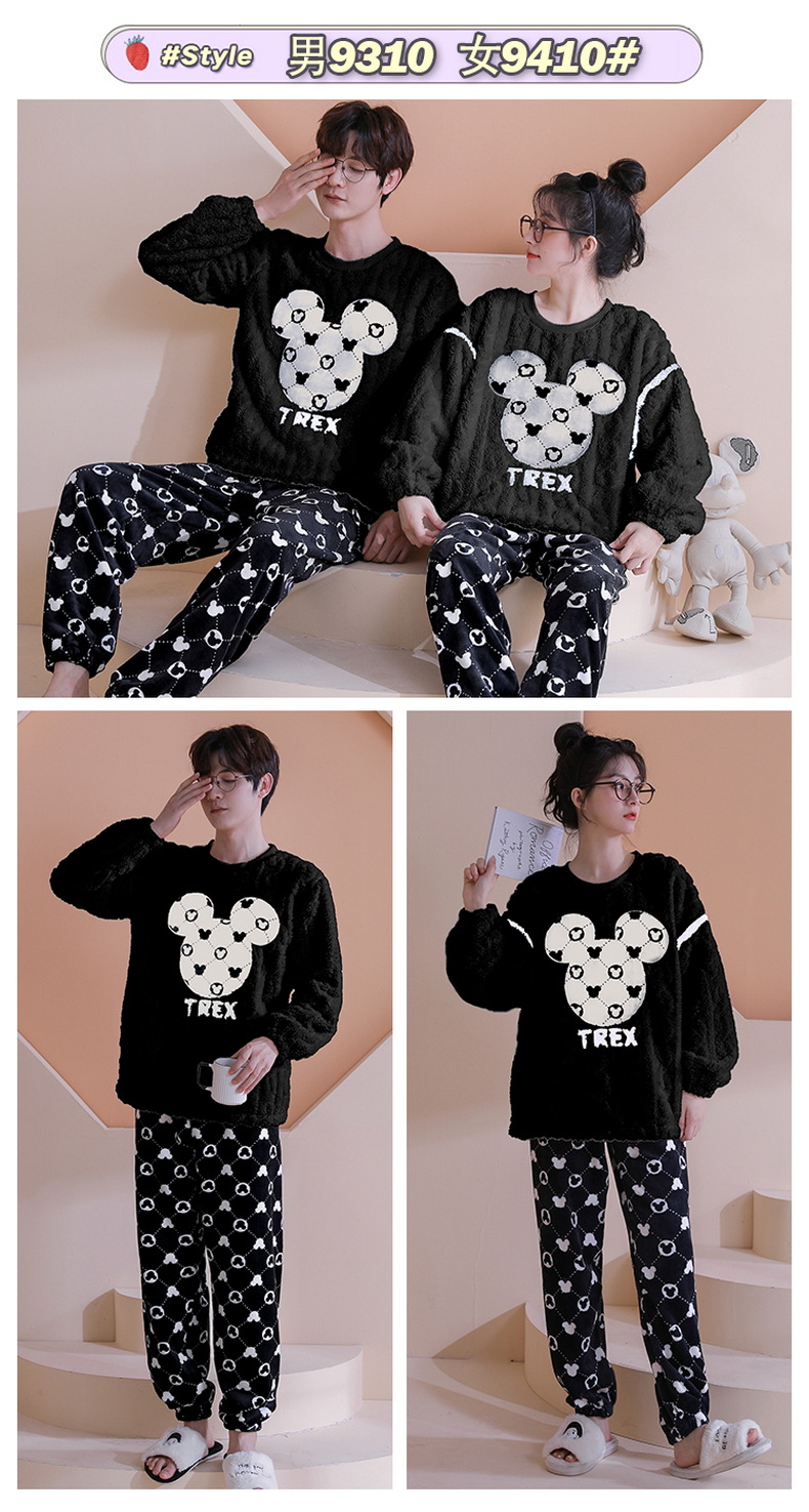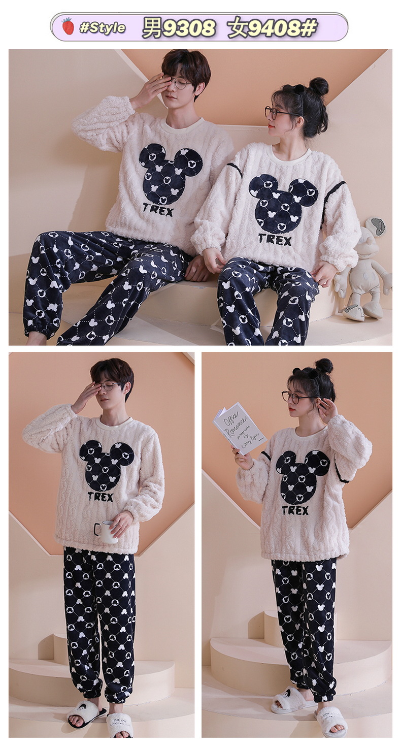 【健康好棉质 温暖冬日】珊瑚绒情侣睡衣秋冬款加厚保暖男睡衣女冬季柔软法兰绒御寒家居服套装