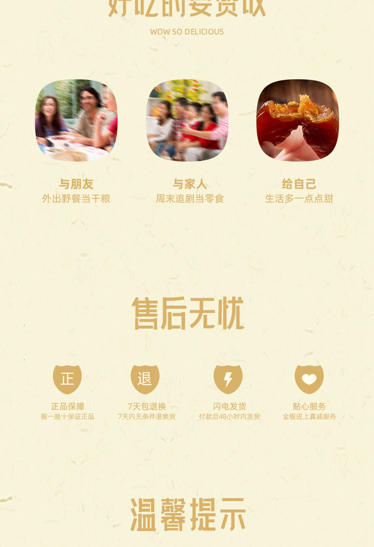 1.食品不支持7天无理由退换货的,如产品有质量问题,请在签收48小时内把带快递面单+产品图片+视频反馈给客服进行售后处理。