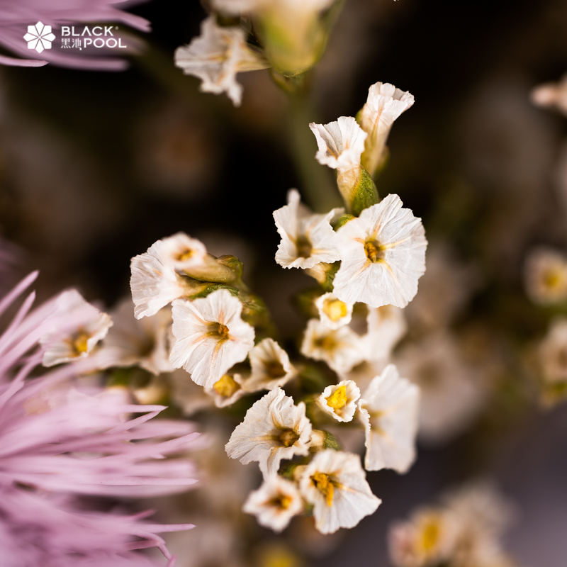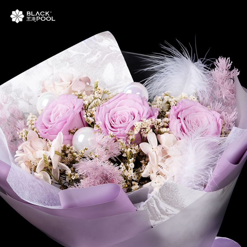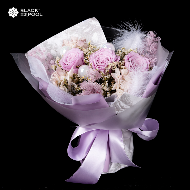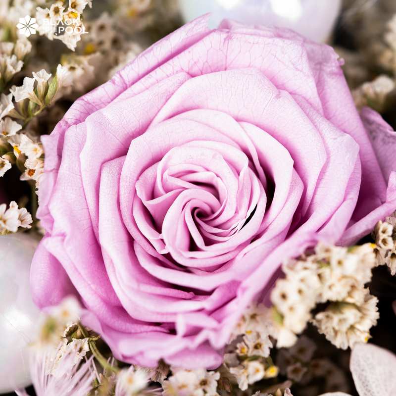 (限南山宝娜)【双子座·永生守护花】浪漫而自由。浅紫色永生花/蓬莱松/绣球/水晶草若干/白色球/羽毛