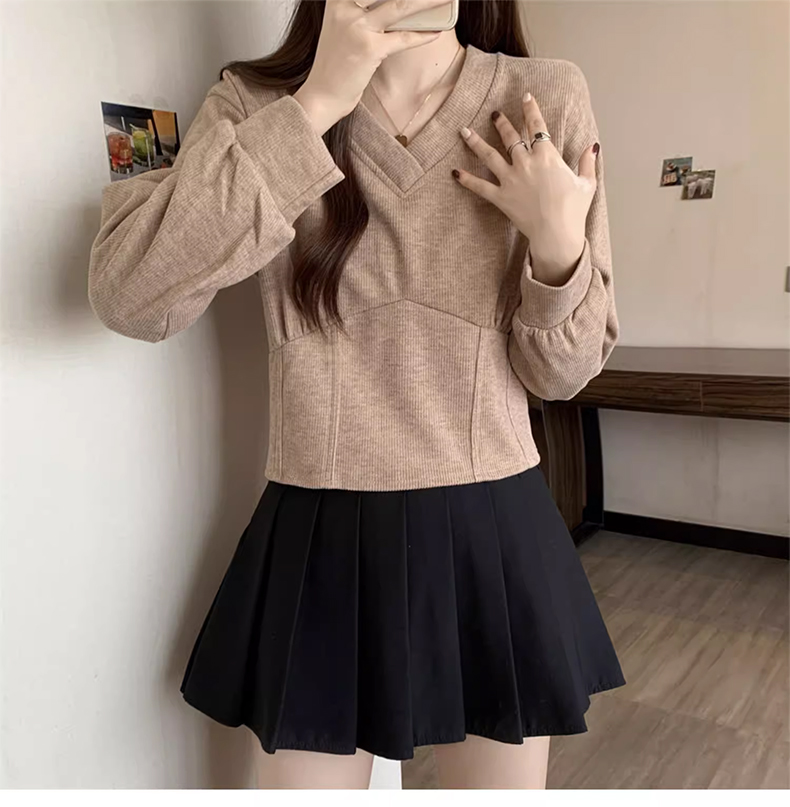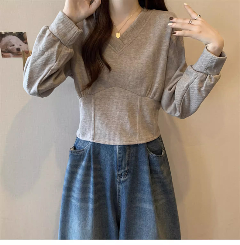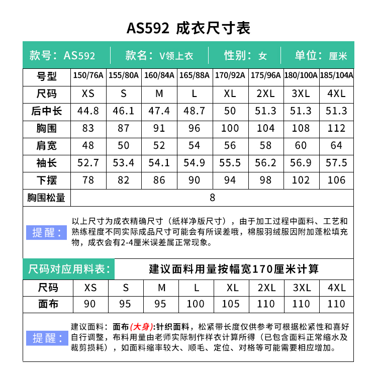 裁缝学苑AS592新款内搭V领打底衫纸样长袖T恤上衣女装卫衣样板