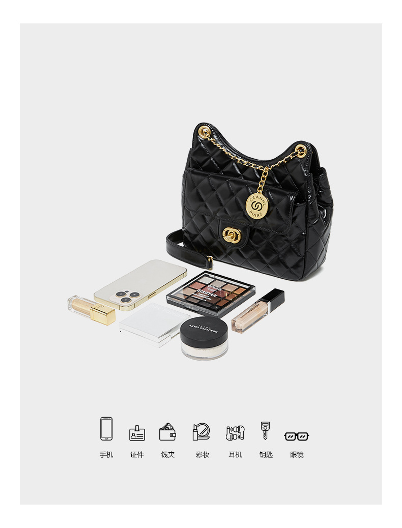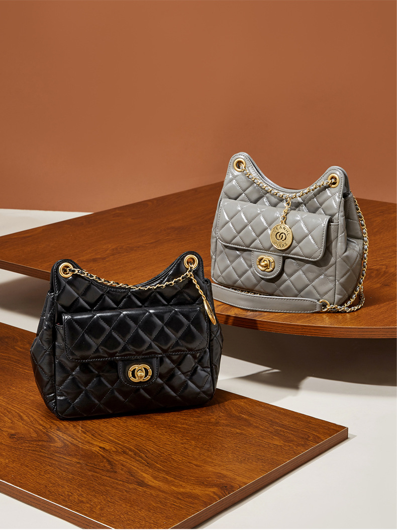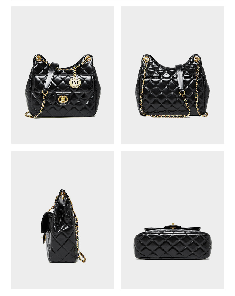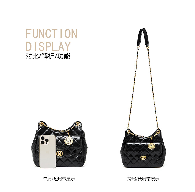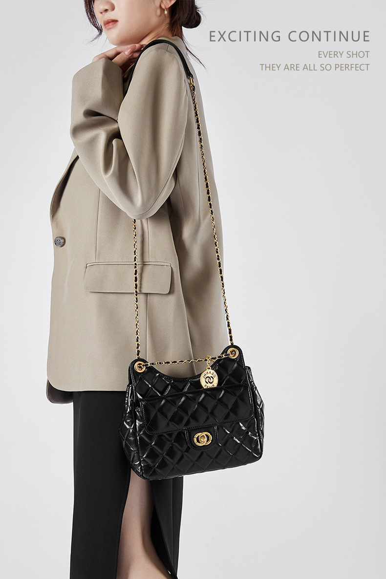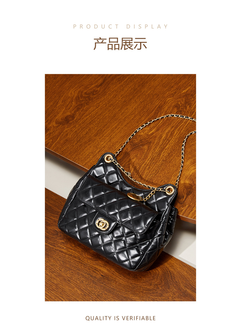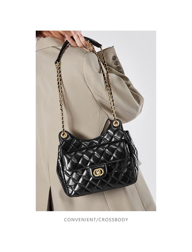 【预售3天】小香风包包女2025新款菱格链条腋下包高级感流浪包单肩斜挎包D2856