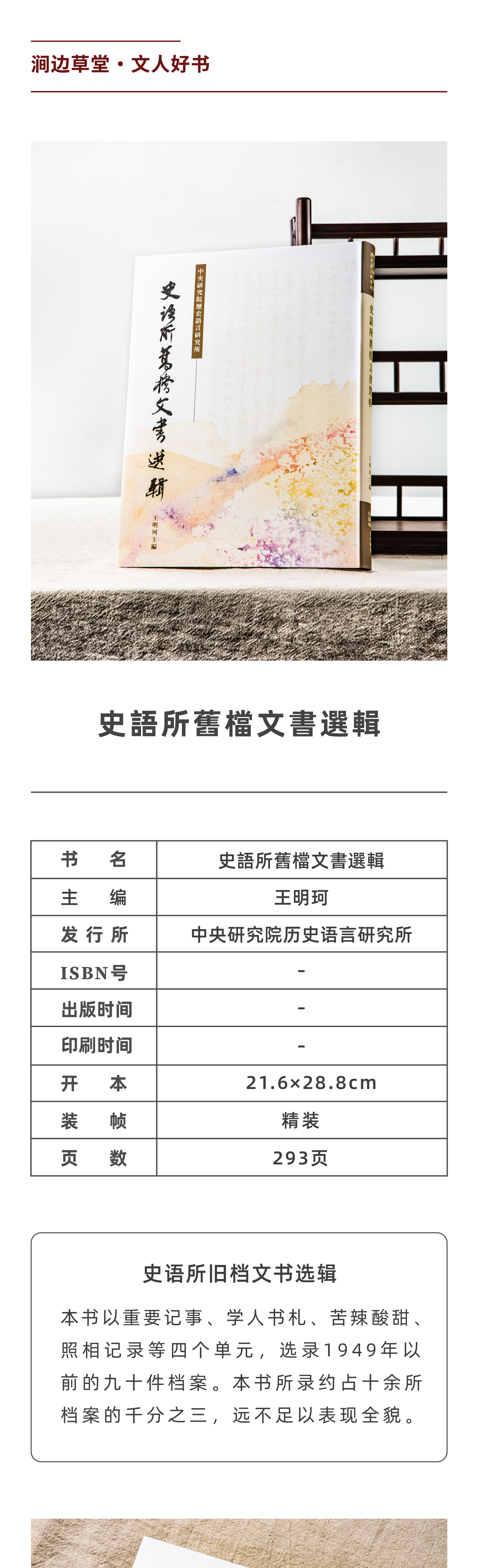 【绝版好书】《史语所旧档文书选辑》大16开精装293页,2018年台中研院史语所初版