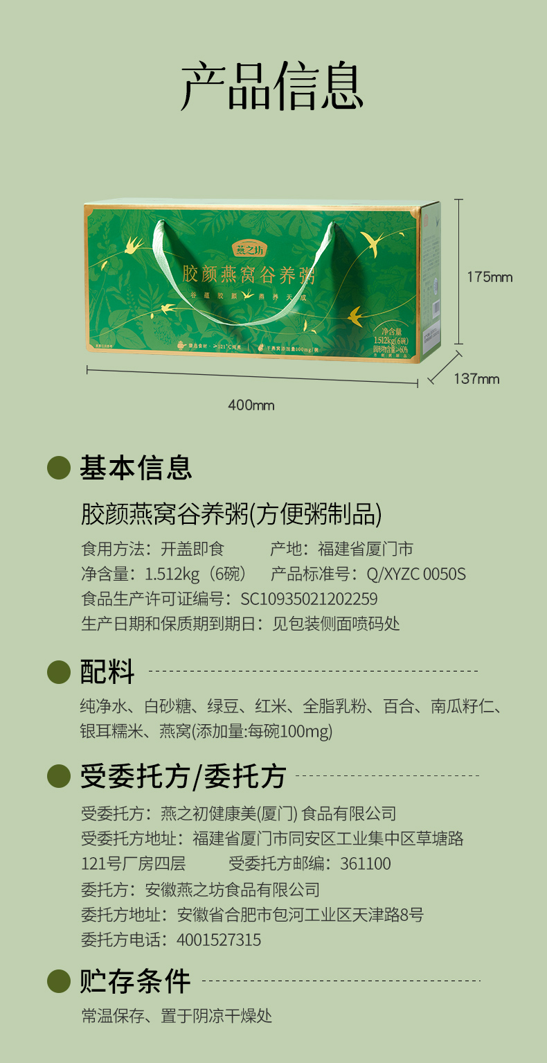 【商城专属】燕之坊 胶颜燕窝谷养粥1.512kg