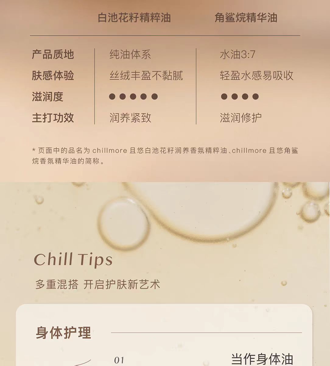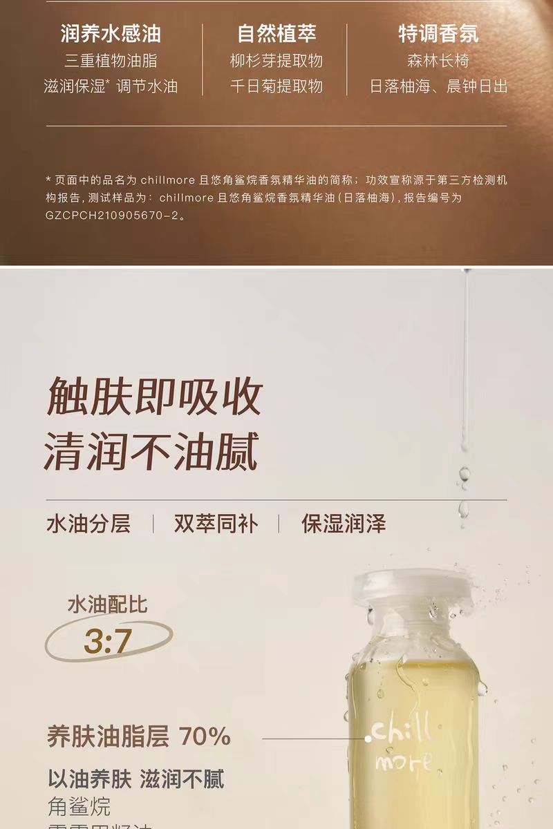 4楼Eubelle欧蓓 Chillmore且悠角鲨烷香氛身体精华油120ml 保湿滋润 焕亮持久留香 吊牌价:189元 活动价:170元