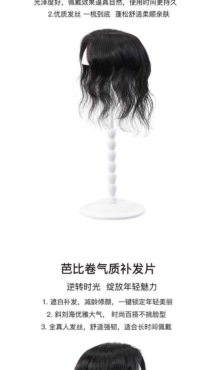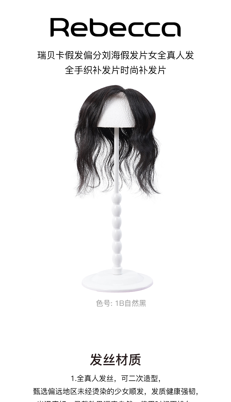Rebecca瑞贝卡假发偏分刘海假发片女全真人发全手织补发片时尚补发片