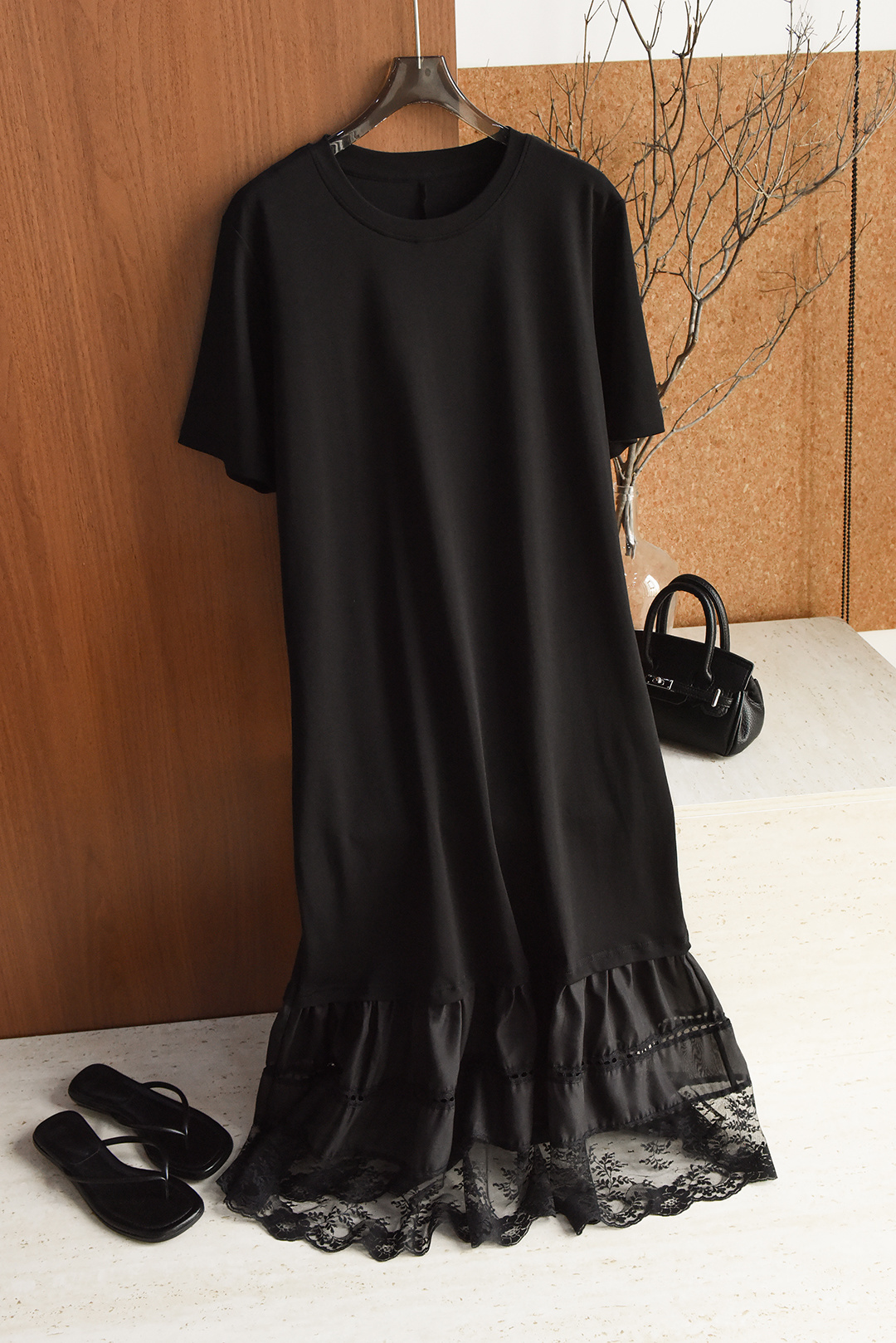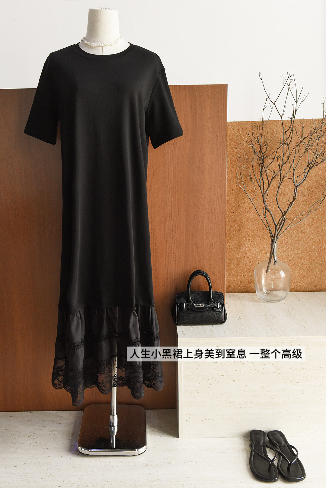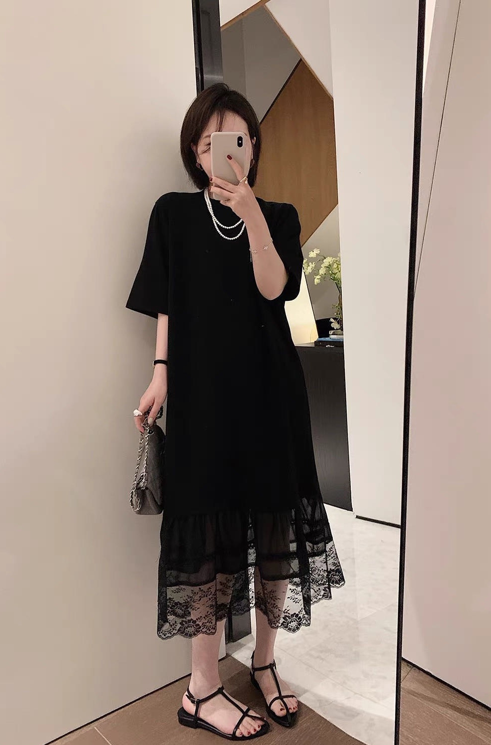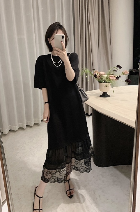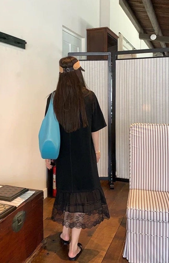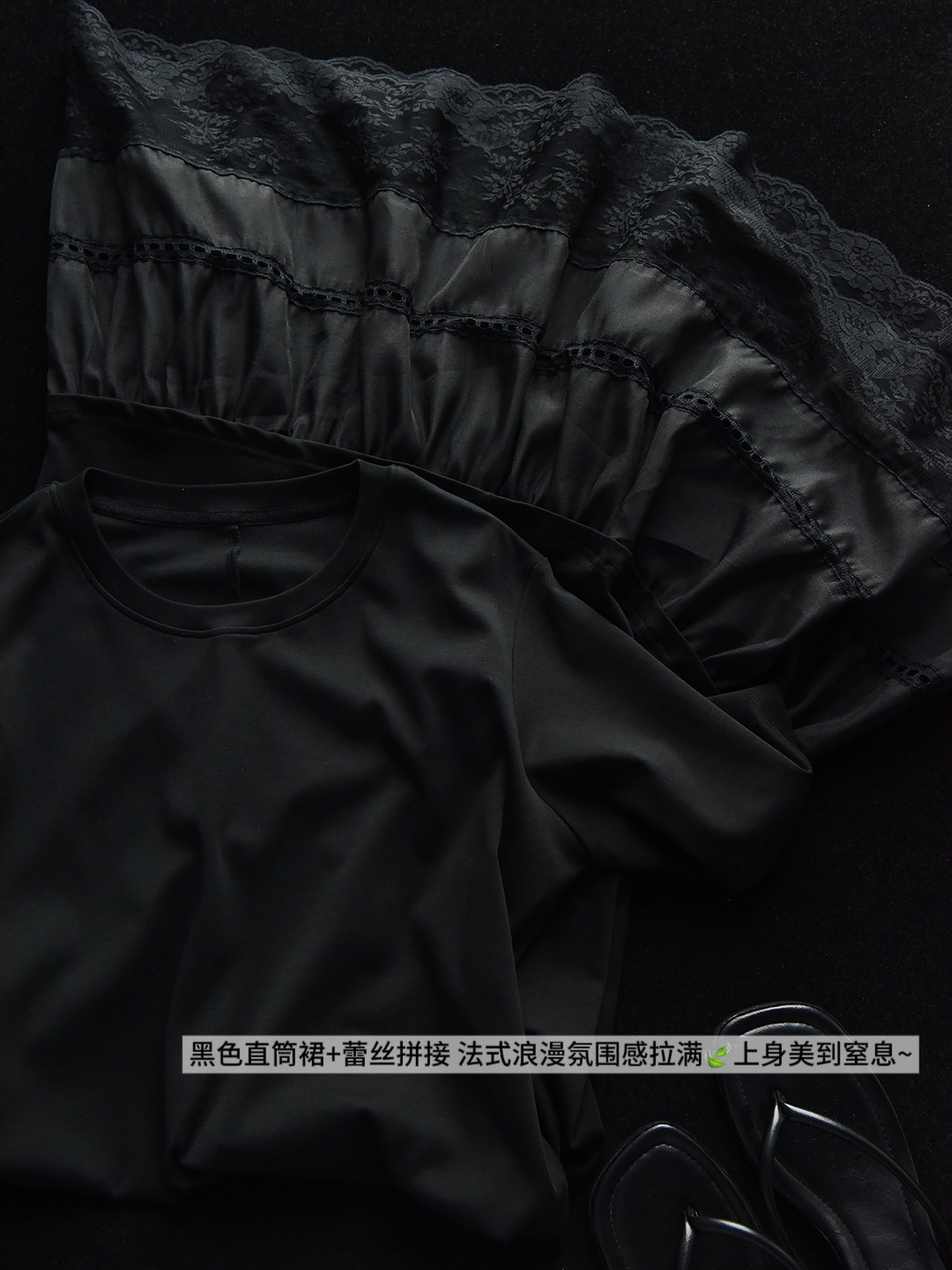 黑色直筒裙+蕾丝拼接 法式浪漫氛围感拉满~