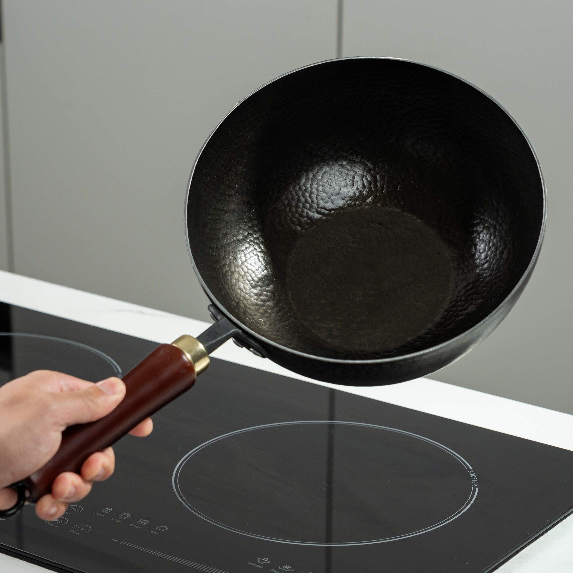 此锅在工厂已经完成了烤蓝环节,收到锅后不需要进行复杂的开锅流程,简单的润锅后即可使用,润锅流程如下:
