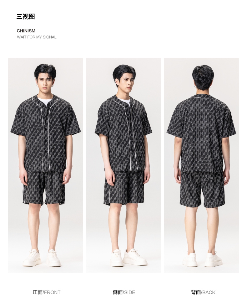 PINLI品立夏季新款设计感拼接短袖衬衫潮牌拉链宽松翻领上衣B252113039
