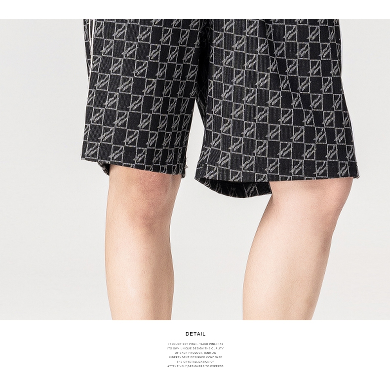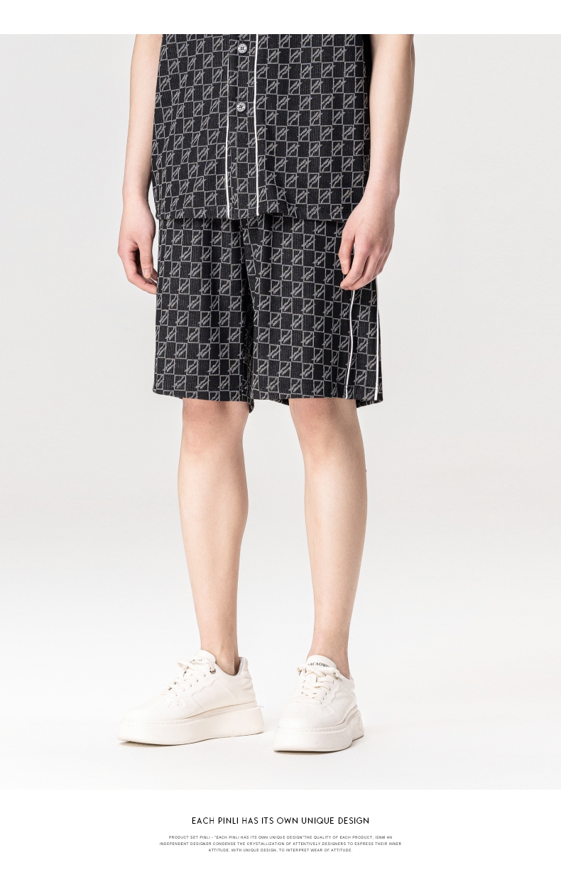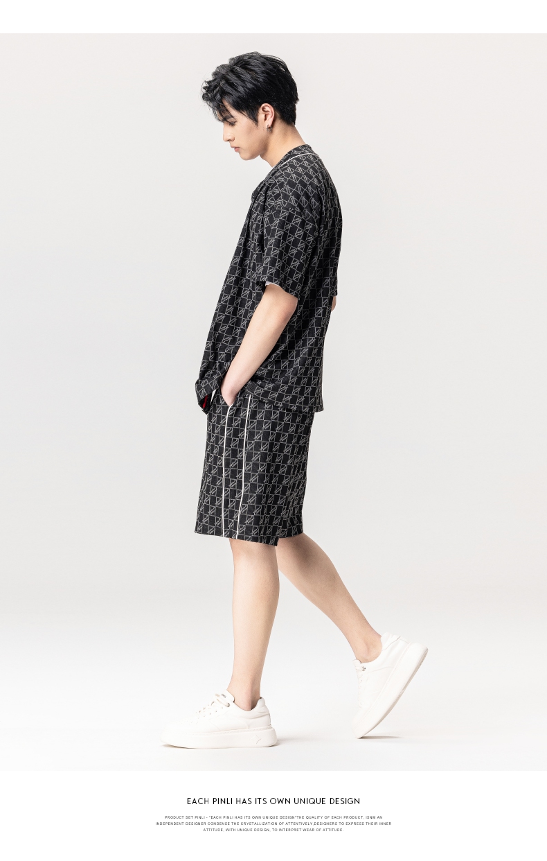 PINLI品立新款撞色体恤几何印花格子V领短袖T恤男装夏季潮牌上衣B222111067