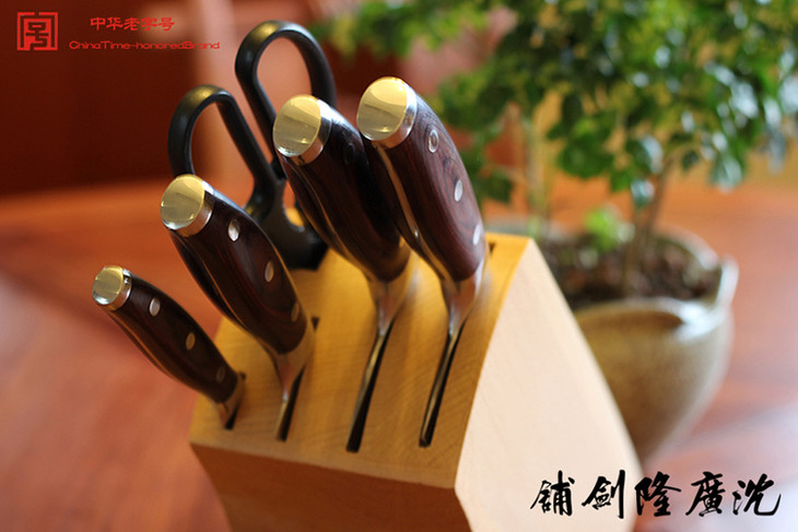 花纹钢菜刀套组 全套厨房套刀 龙泉沈广隆剑铺宝剑 沈广隆刀具 sgl-7097