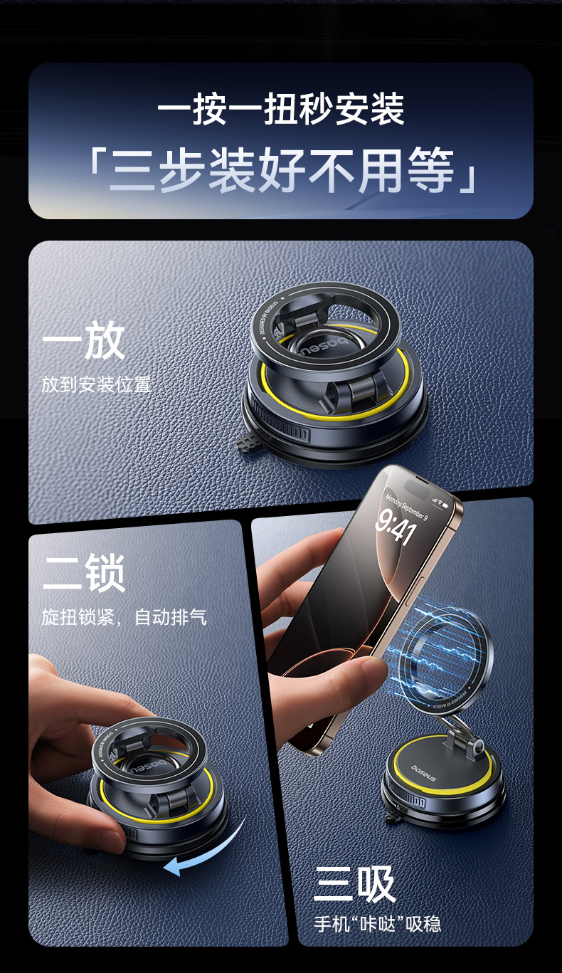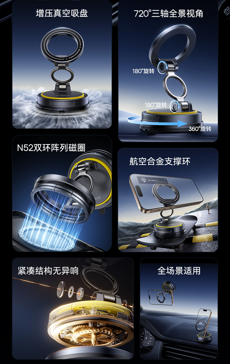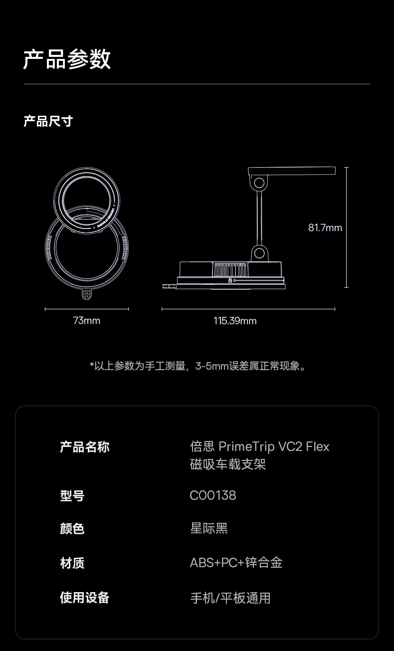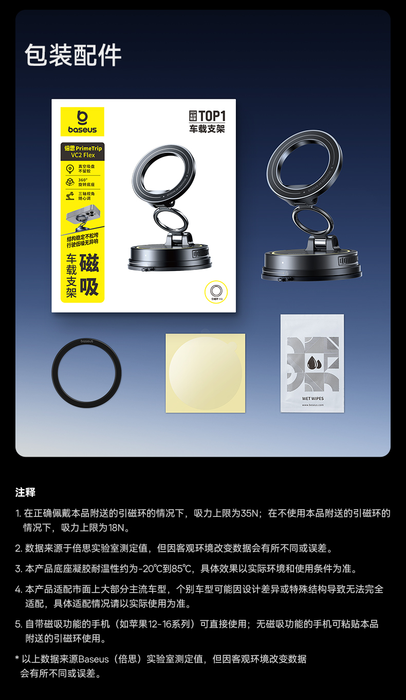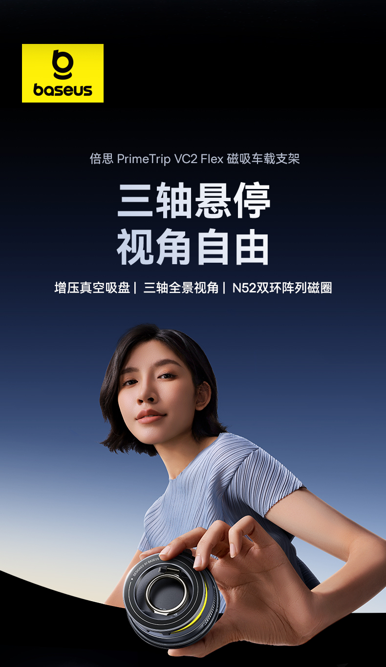倍思 PrimeTrip VC2 Flex 磁吸车载支架 吸盘版
