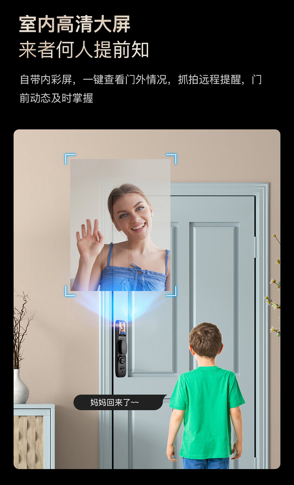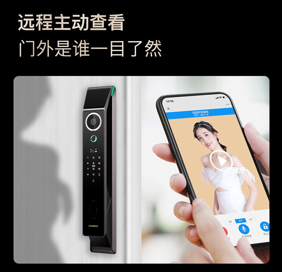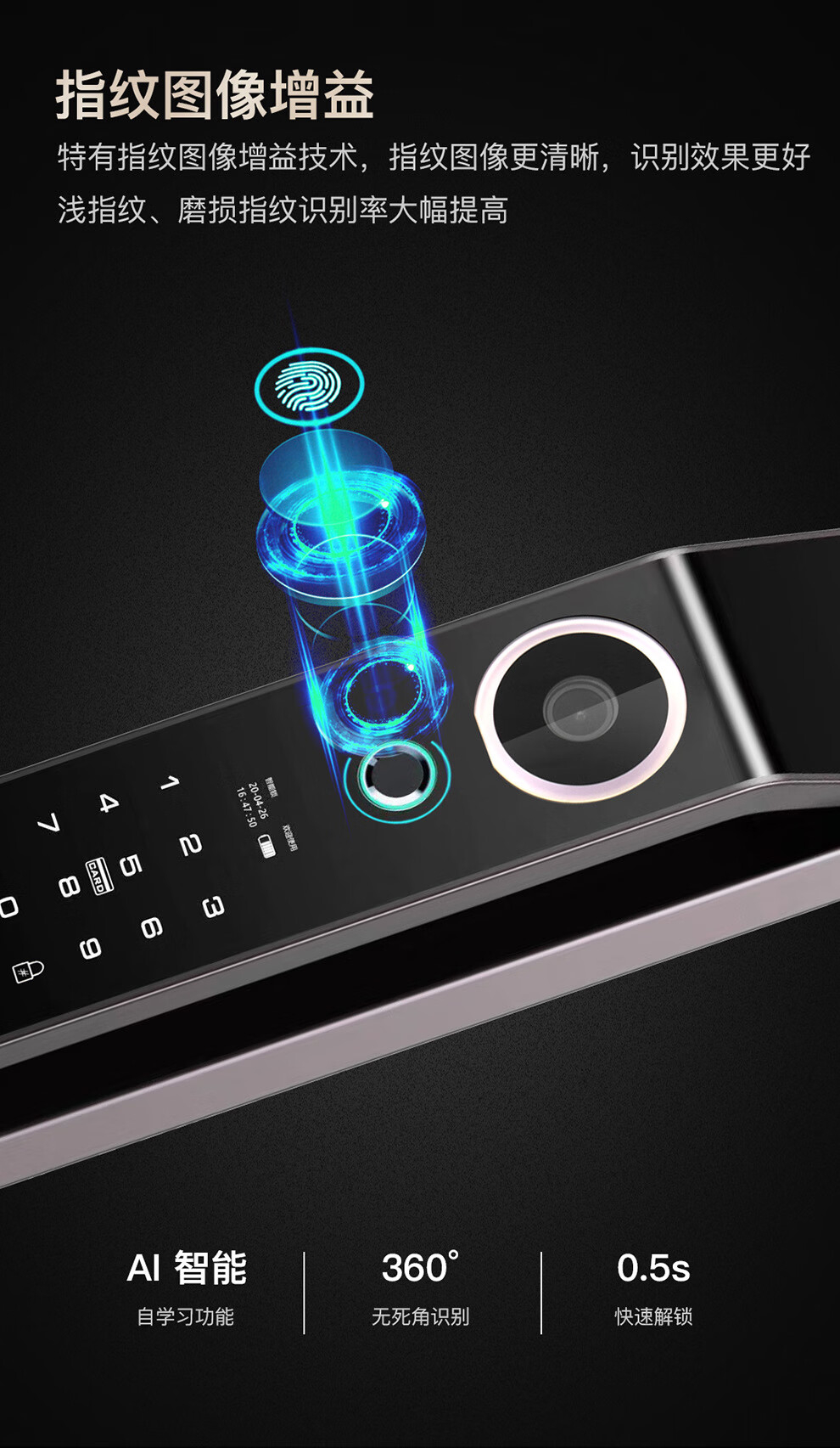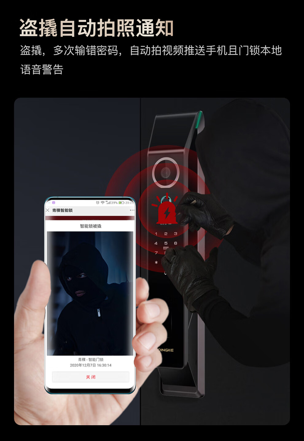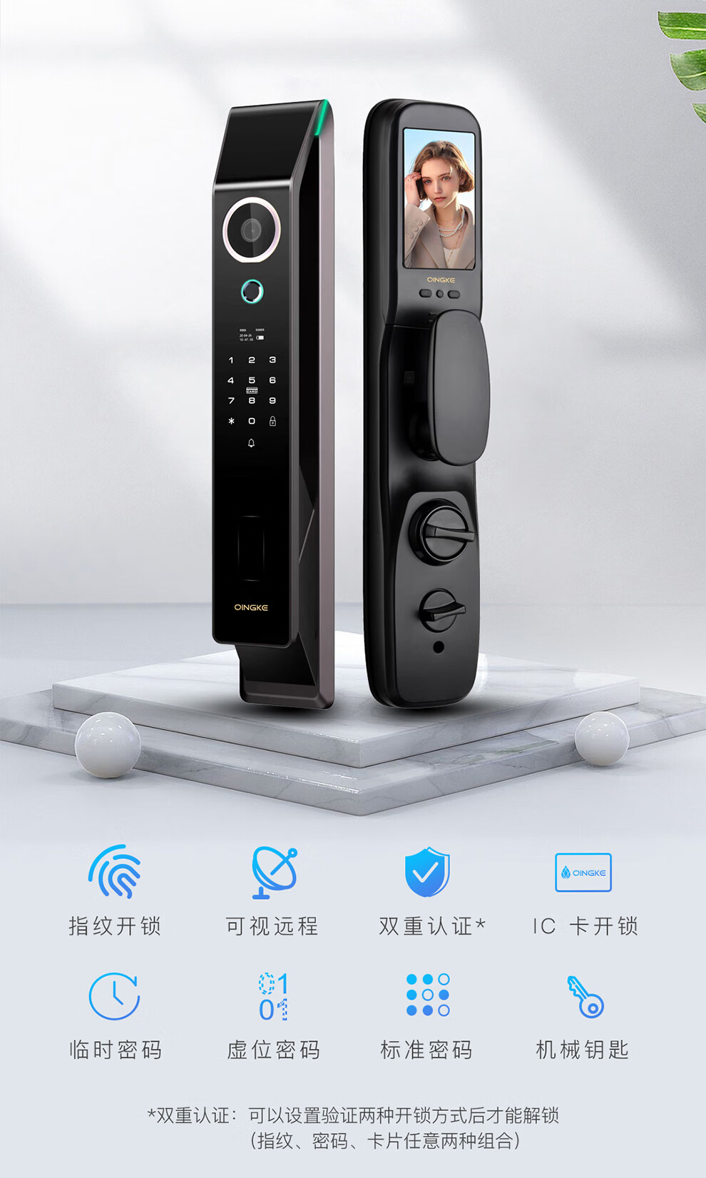 青稞V5M 指纹锁全自动触控双屏可视猫眼远程对讲指纹密码智能锁