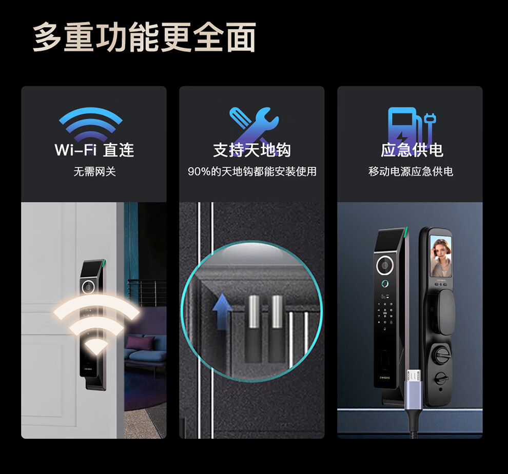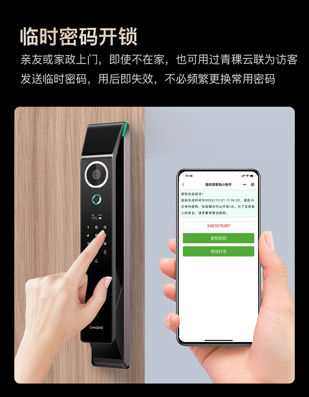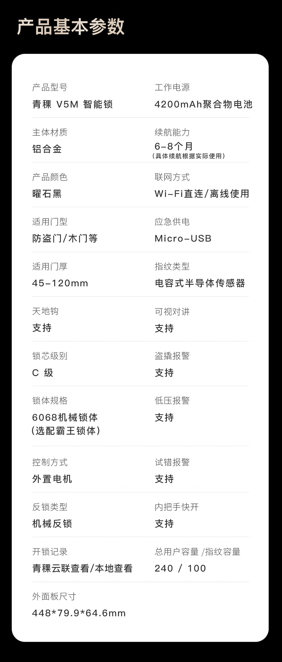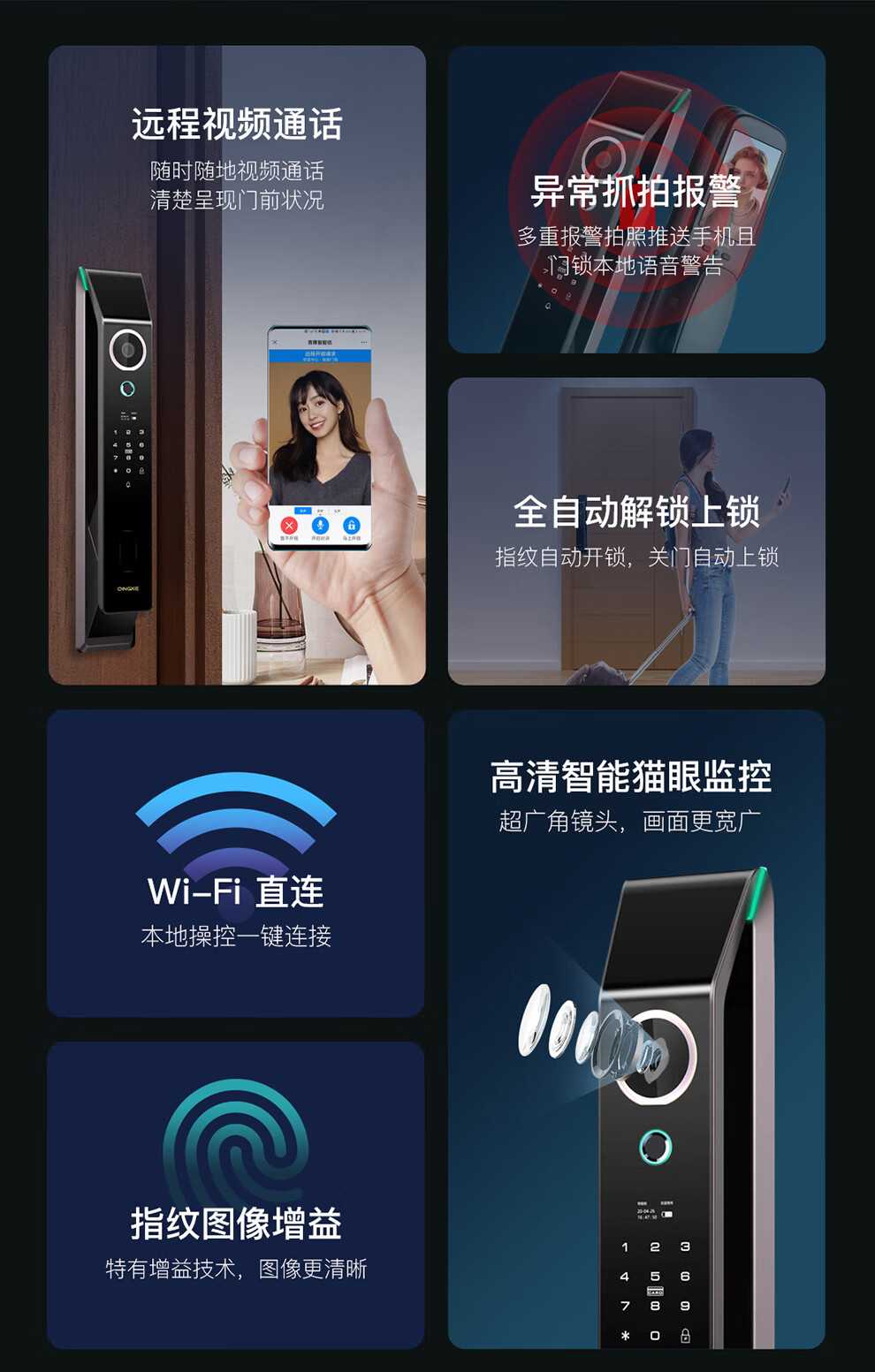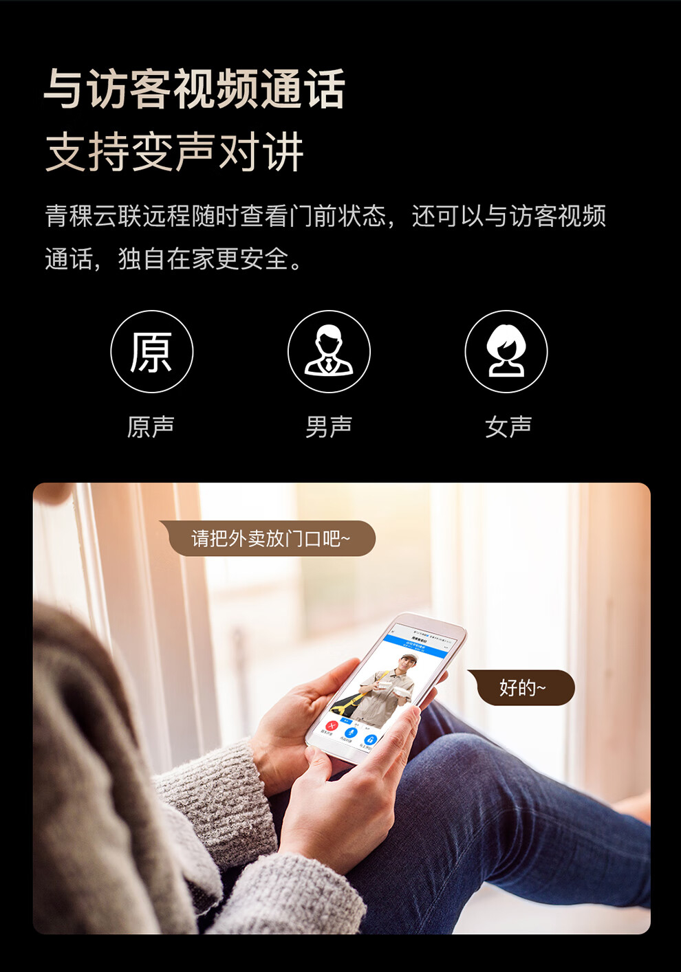青稞V5M 指纹锁全自动触控双屏可视猫眼远程对讲指纹密码智能锁