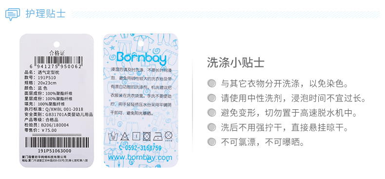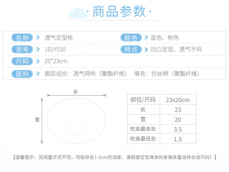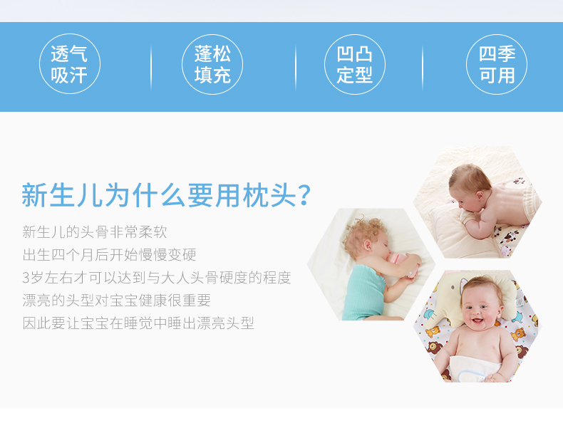 贝贝怡宝宝透气舒适定型枕防偏头新生婴儿午睡枕头柔软睡枕191P510
