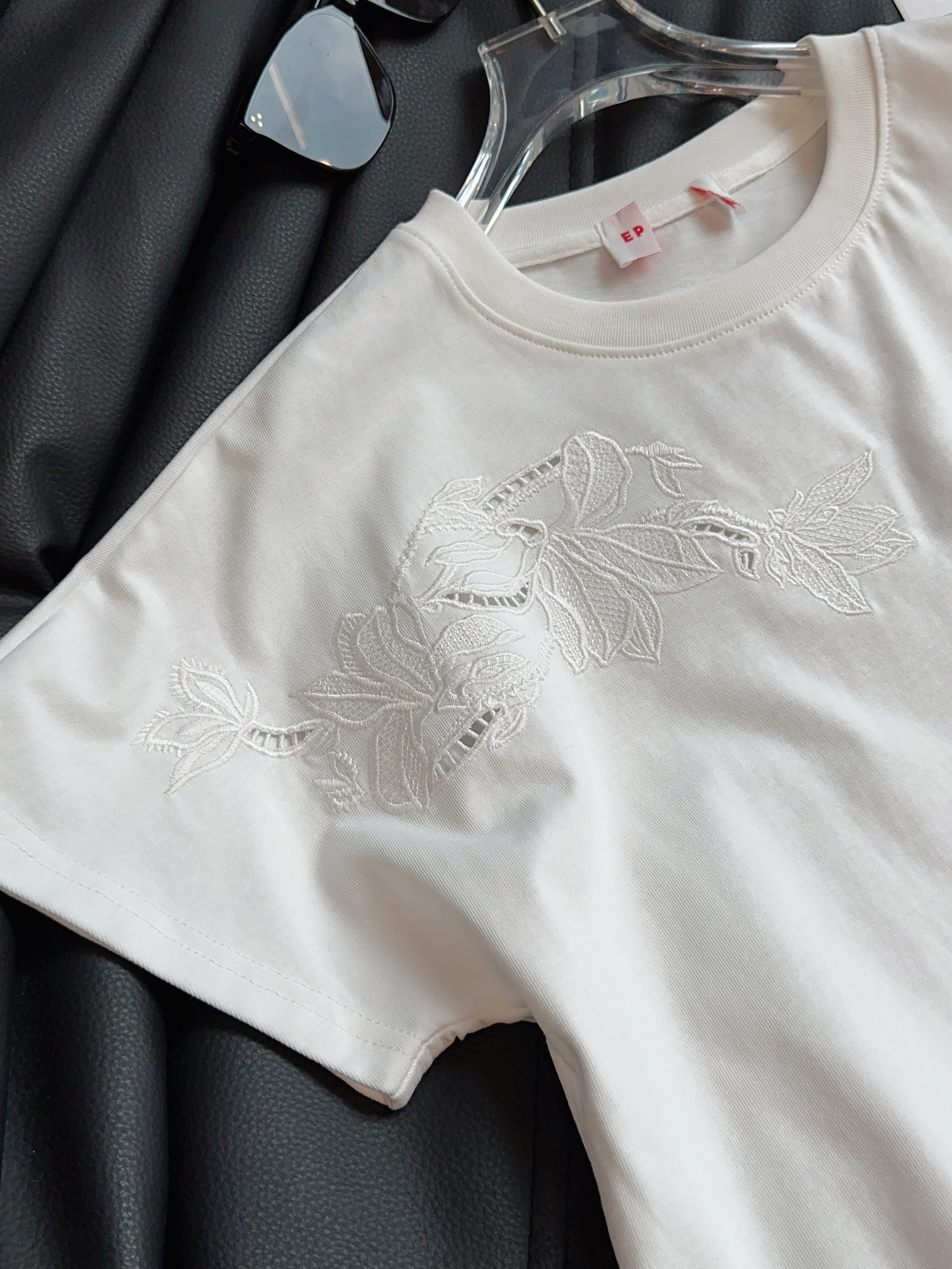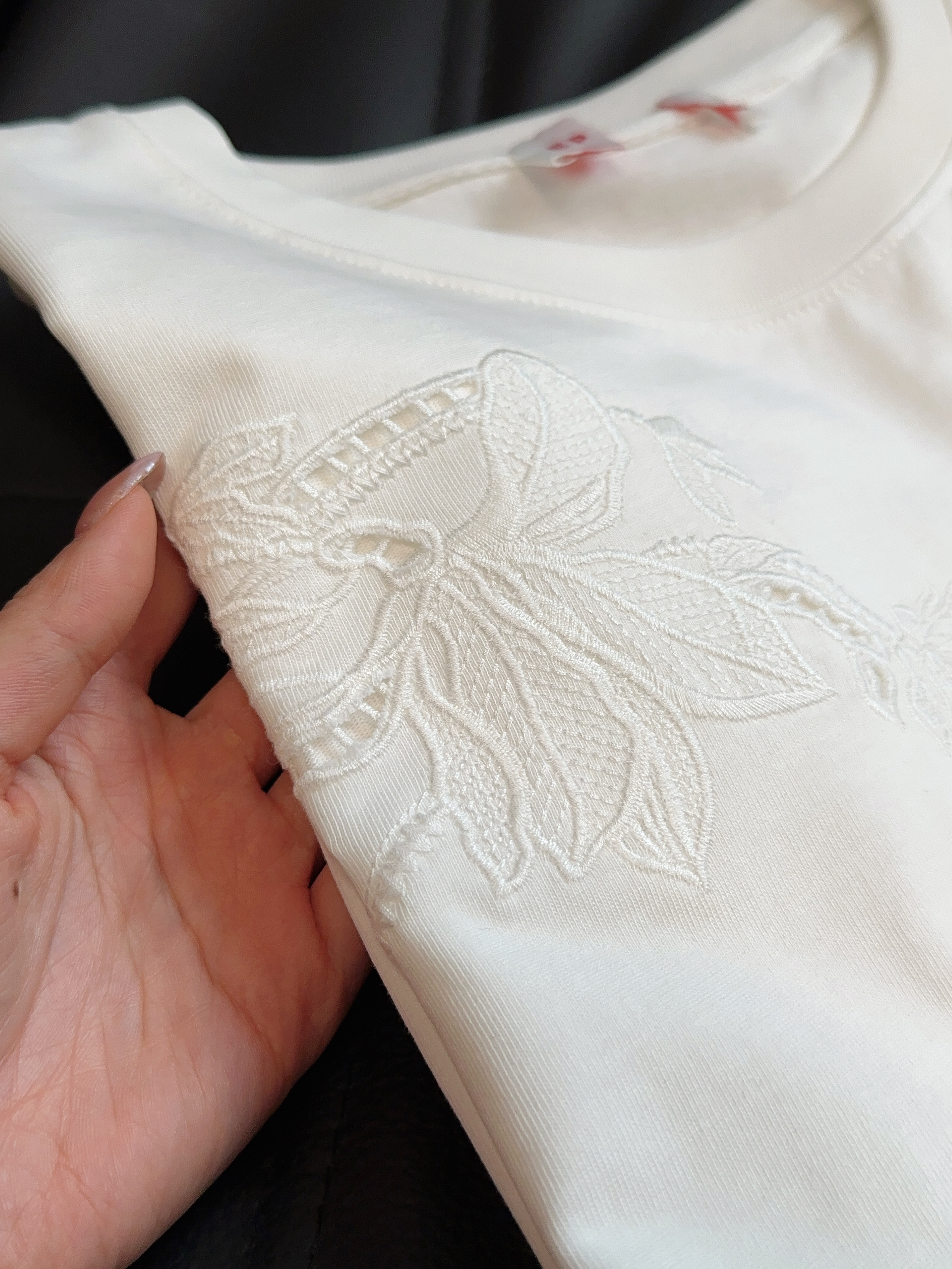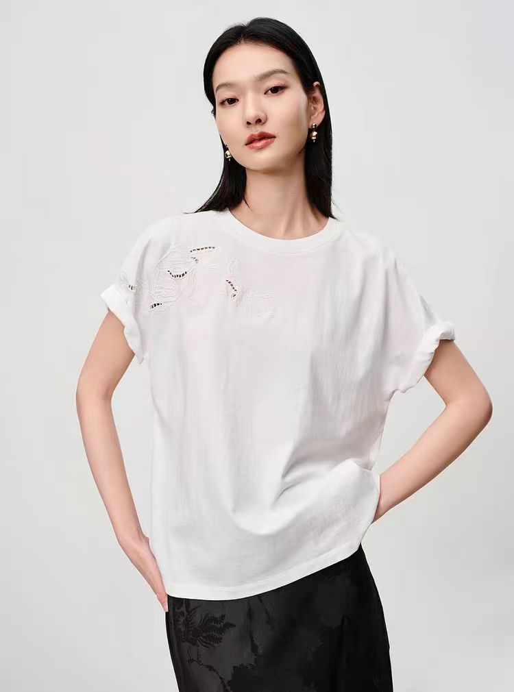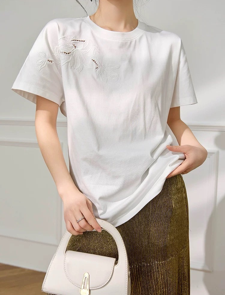 镂空刺绣玉兰花…上身真的巨高级~简约基础纯色T+立体镂空绣花,任意百搭