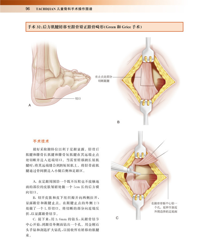 手术32:后方肌腱转移至跟骨矫正跟骨畸形(Green和Grice手术)