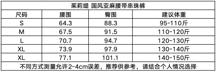 【品名】茱莉缇JURLIEDI 江南水乡国风亚麻腰带串珠阔腿裤 休闲舒适 松弛百搭 【规格】米杏色、藏青色 【尺码】S-2XL 【产地】国内 【材质】粘纤50.3% 聚酯纤维43.3% 锦纶5.2% 亚麻1.2% 【发货包装】独立包装袋 【发货地】广州 【发货快递】申通 【不发货区域】港澳台 【发货时效】48-72小时,周末节假日顺延 【色差说明】因显示器,拍摄光线,角度不同存在些许色差,请以收到的实物为准,色差情况属正常情况。 |
