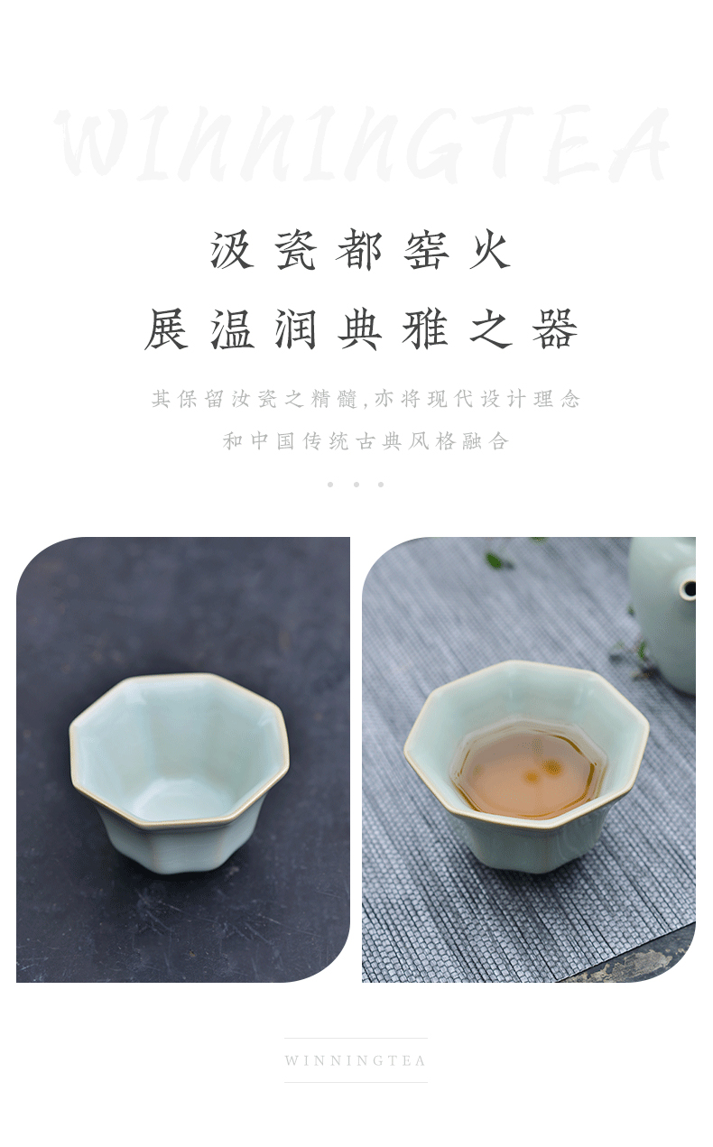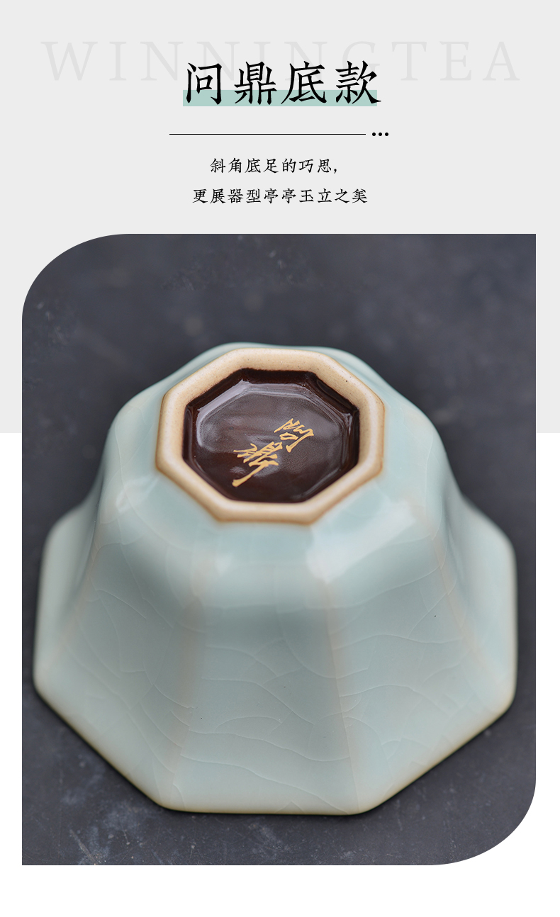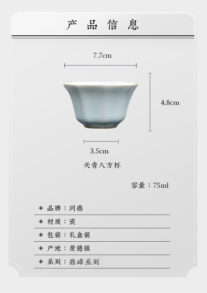 问鼎汝瓷鼎峰系列天青老款紫金釉经典款八方杯