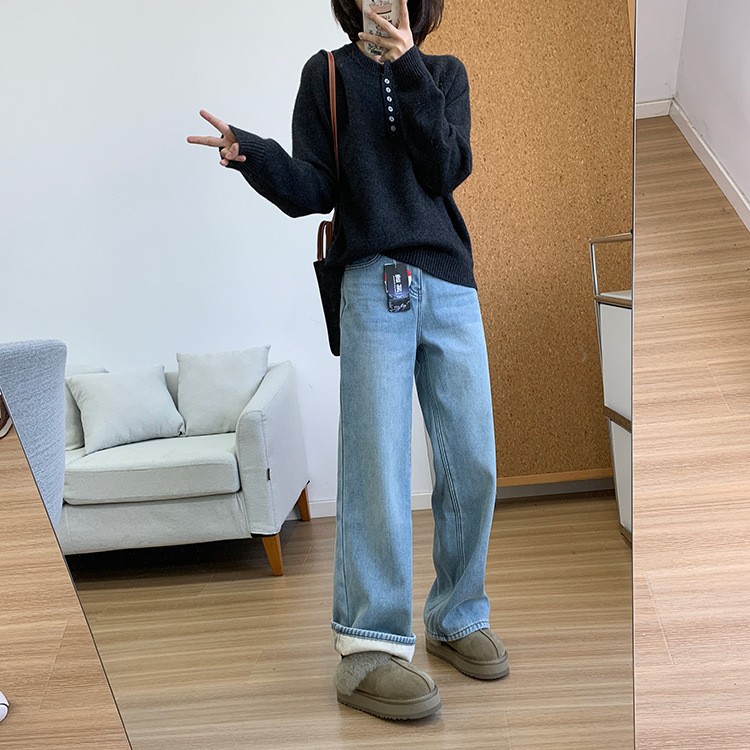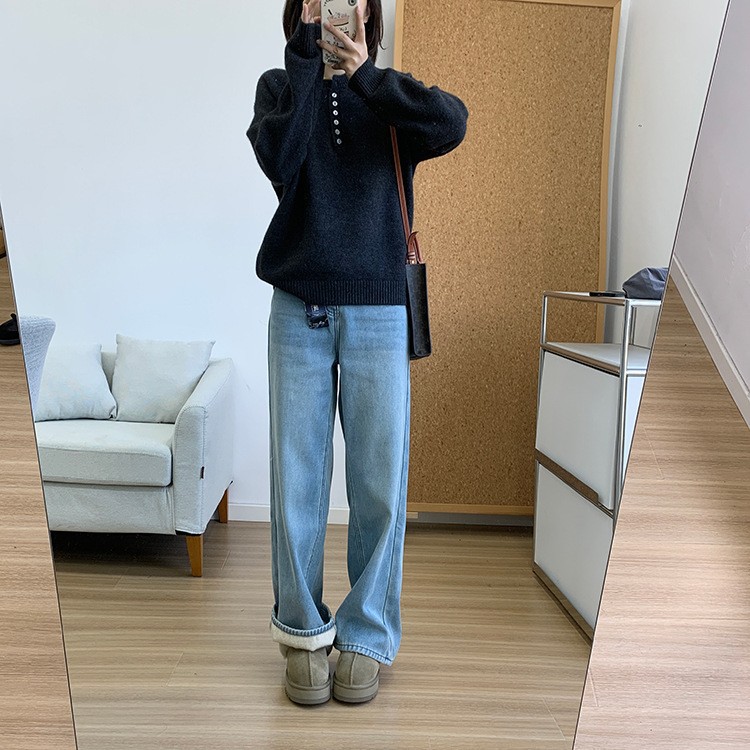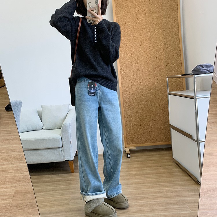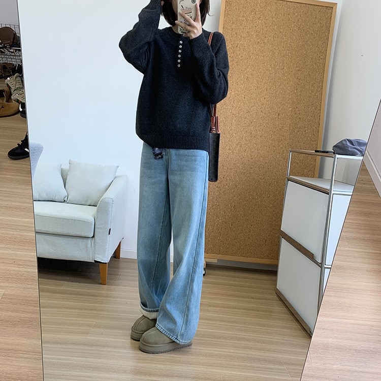 而且裤型是那种宽松程度刚刚好的日系直筒 hin有味道