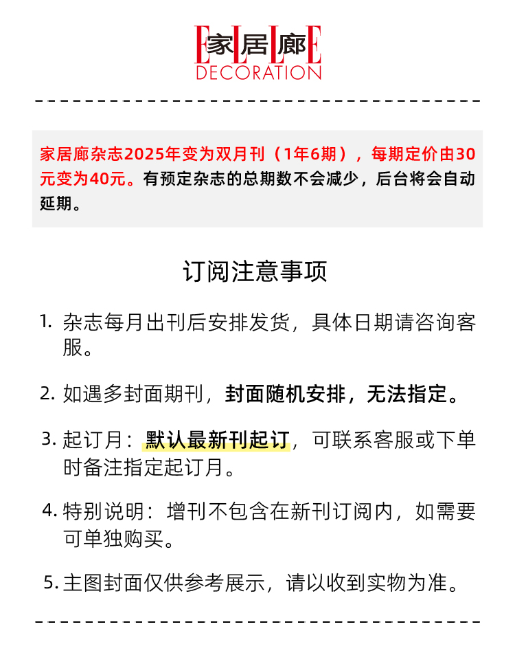2026年【ELLE信用卡持卡人专属优惠】家居廊 双月刊 订阅全年6期 包邮