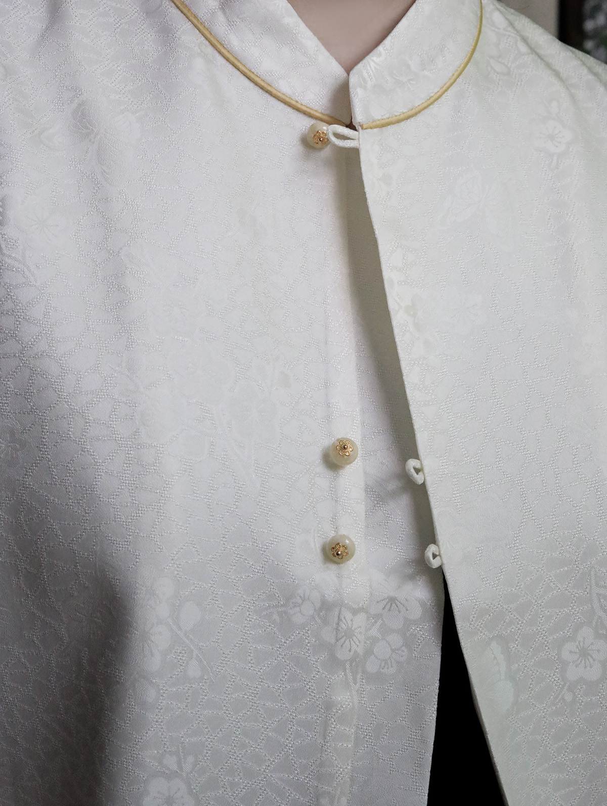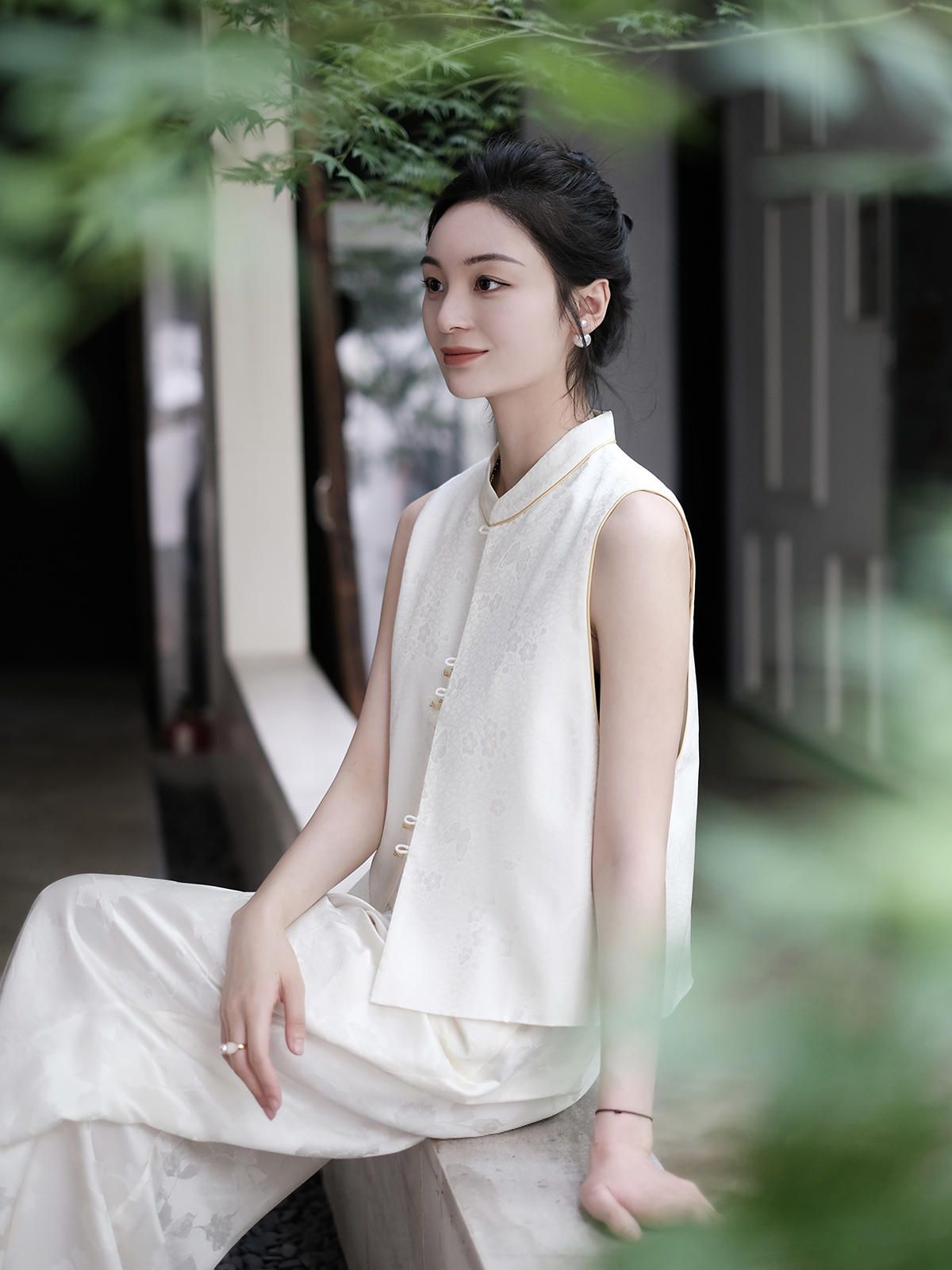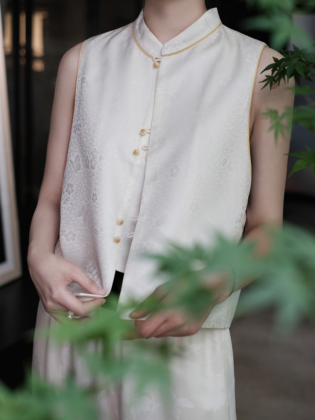 盛唐婧 |真丝花罗芳蝶对襟马甲-白色