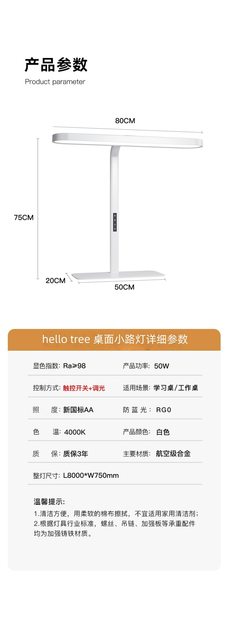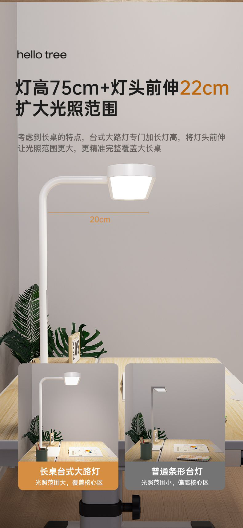 HELLO TREE 护眼学习阅读LED调光桌面小路灯学生学习专用灯