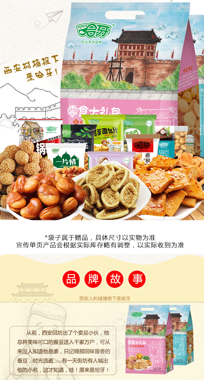 哈牙新款零食大礼包组合混装880g 自选小包休闲食品 清真食品