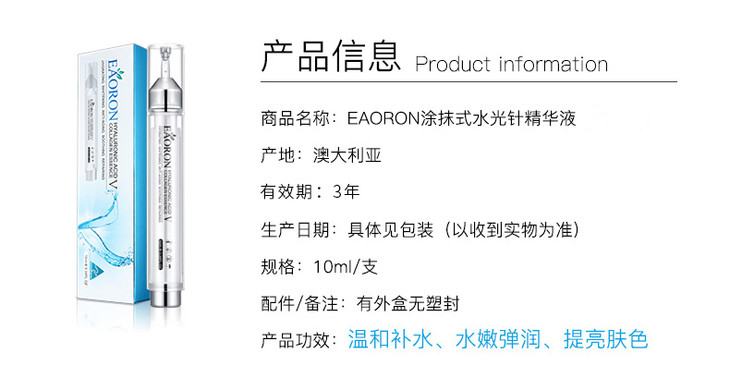 清仓福利!澳洲 EAORON澳容 第五代水光针精华液 涂抹式玻尿酸 补水保湿提亮肤色 3ml【香港直邮】日期到26年4-6月