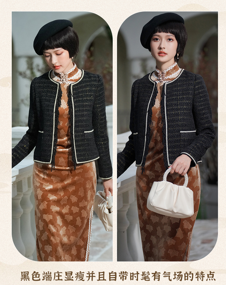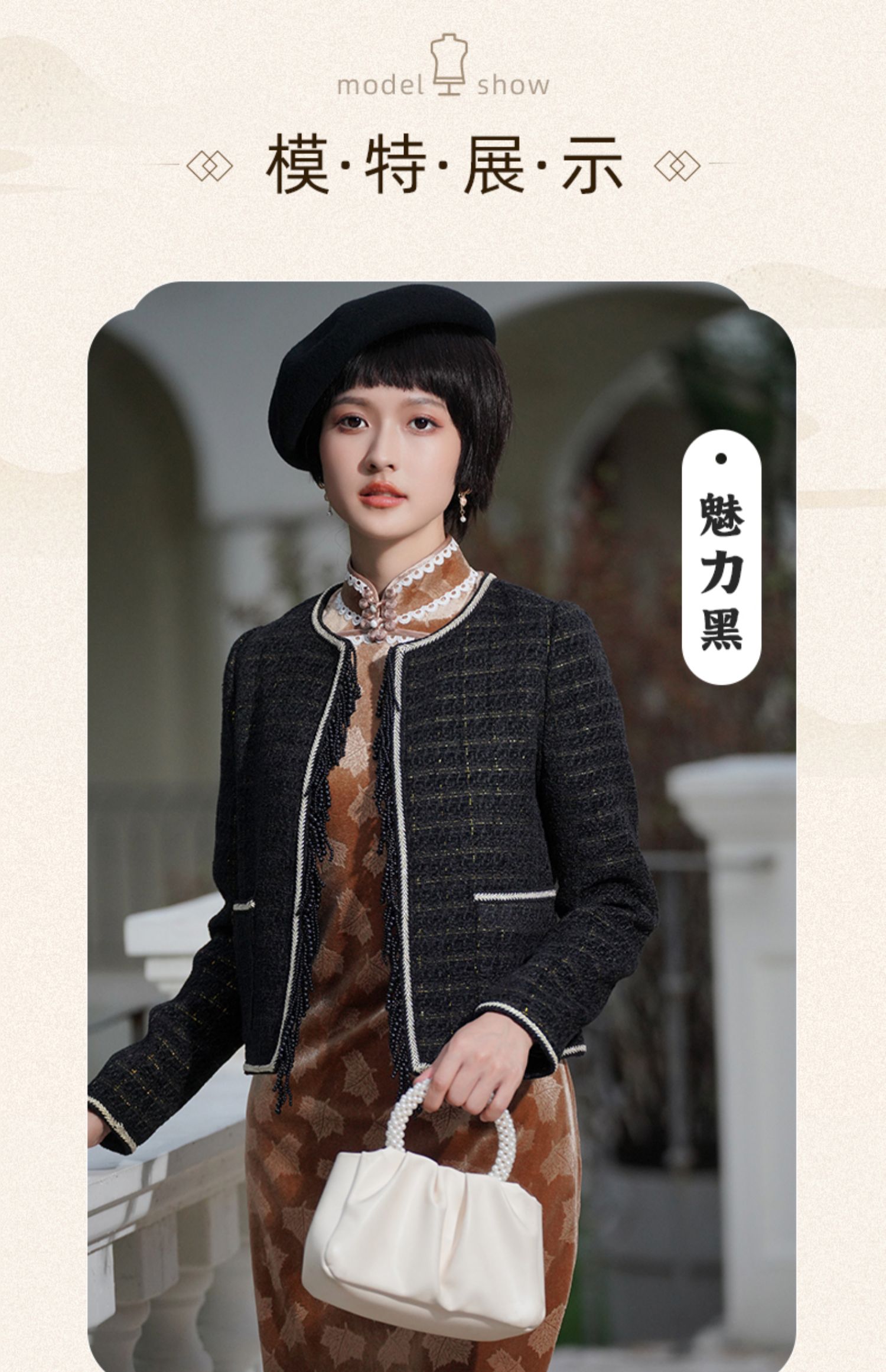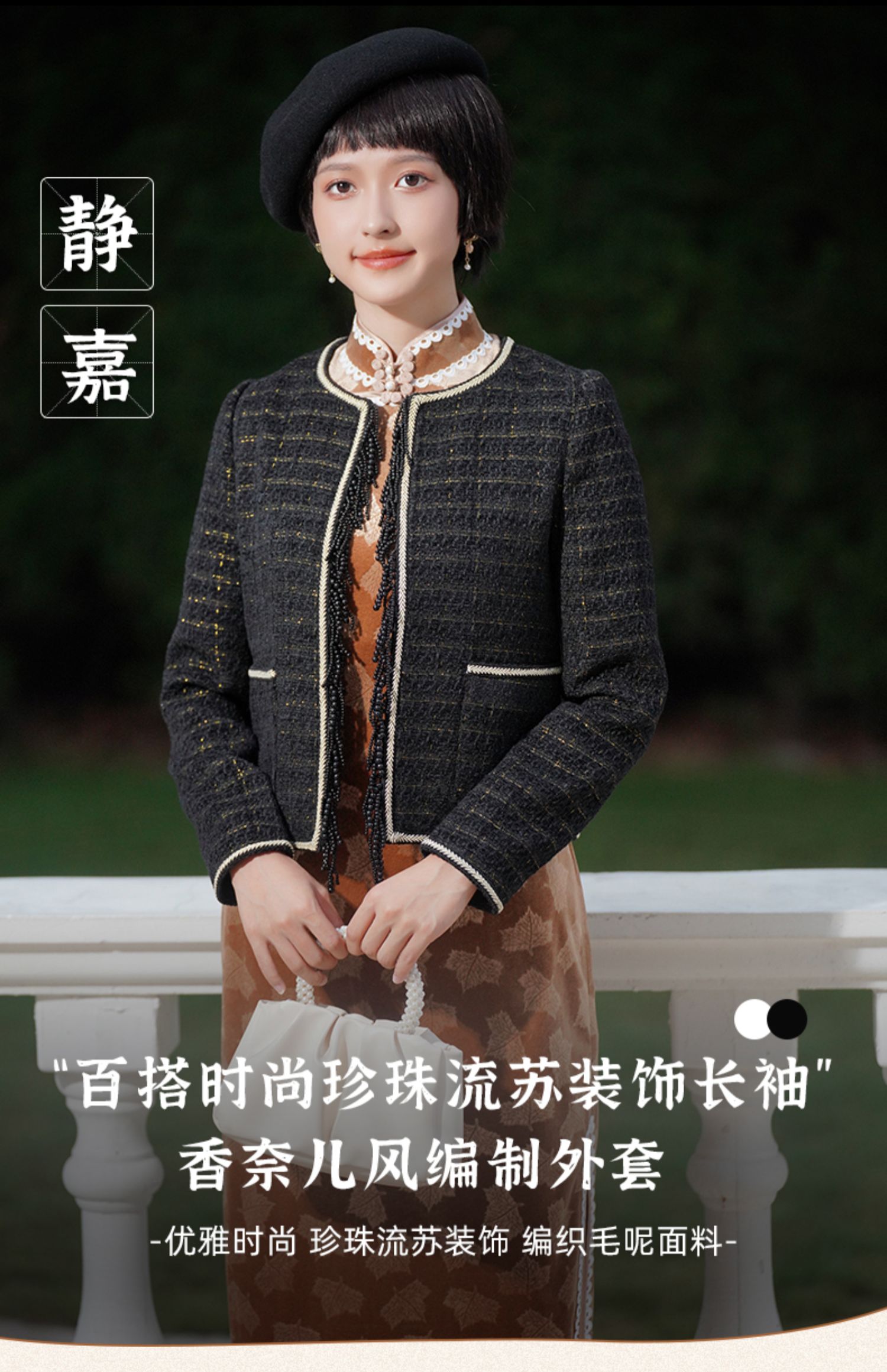 逸红颜明月优选#丝绒钉珠衫「夜流光」✨当小香风撞进阿玛尼的夜幕奢华