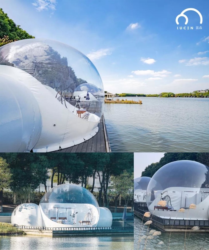 泡泡屋以环保再生塑料经气压释放保持肿胀而形成,其最初的设计理念即是以极少的构面使人与环境构成和谐的关系,让住进泡泡里的梦想成为现实!