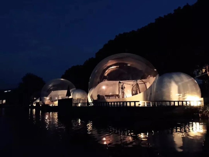 晚上,夜色给整个泡泡镀上了天然的滤镜,意境十足!在这样的泡泡屋中美美地睡一觉,梦都是甜的吧?