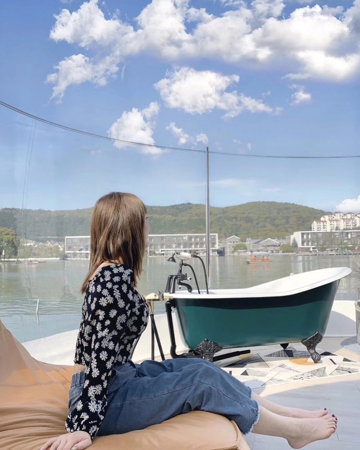 泡泡独占一隅,房顶露天的面积也更大,360度全方位透明泡泡屋,日出、夕阳、星空都看遍;一年365天,从早到晚、从冬到夏,可未来、可奇幻、可清新!