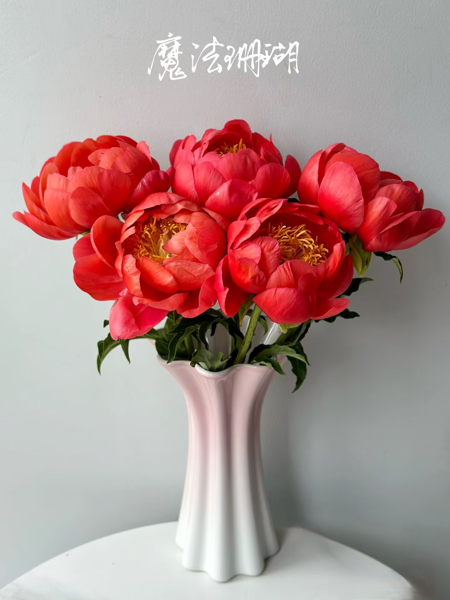 特别说明:珊瑚芍药特别容易开,发货前为花苞状态,可能发货的路中就会出现半开的状态。要少水养【1-2CM的水位】,深水养护会开翻过去,这个时候需要放冰块在花瓶里面才能恢复