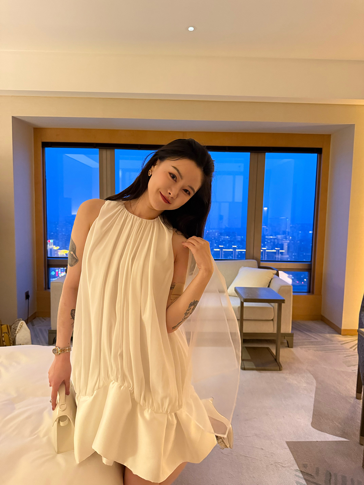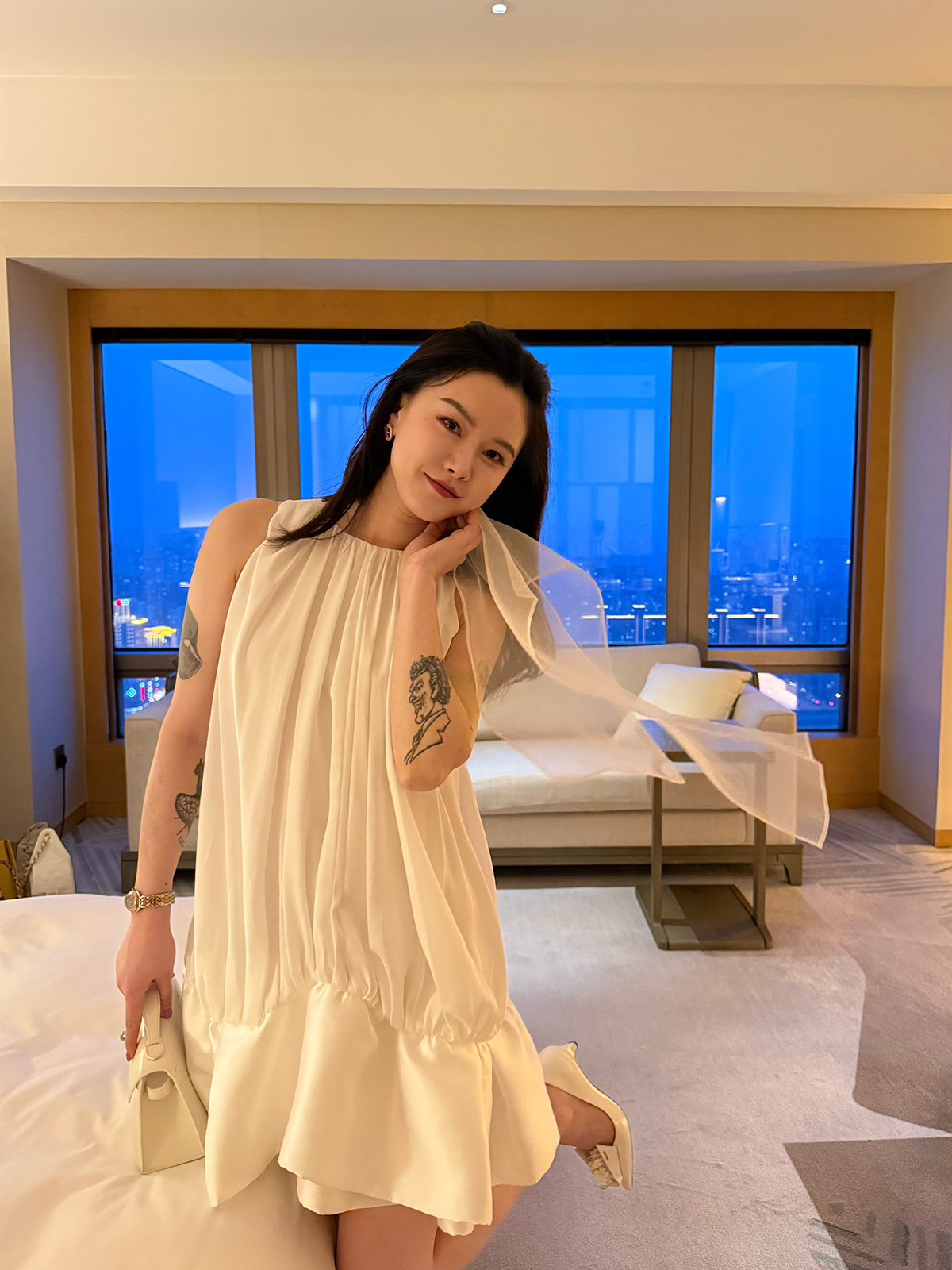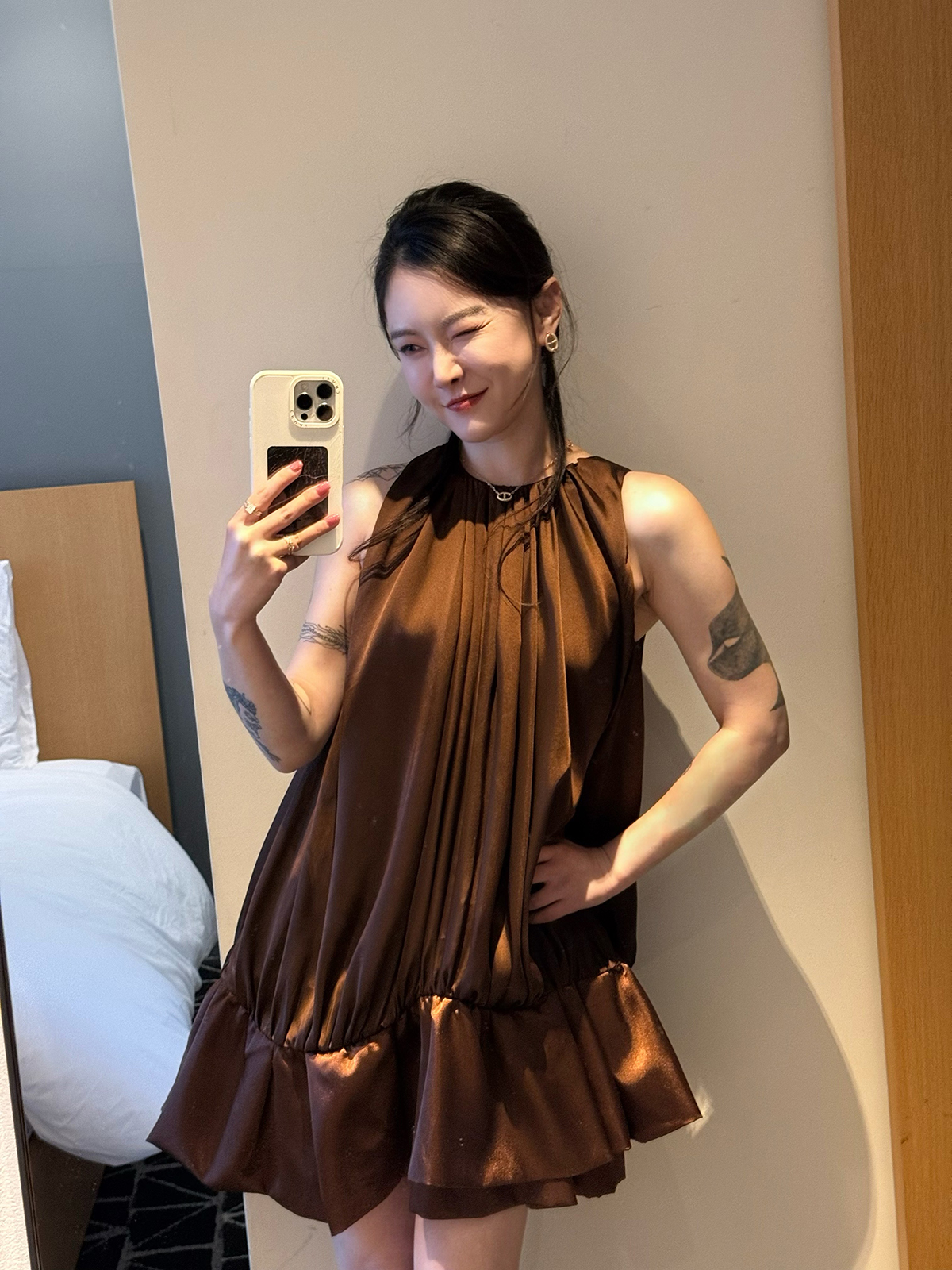 DUO智仙生 黑标 铂金女孩 像郁金香一样盛开贵气褶皱连衣裙