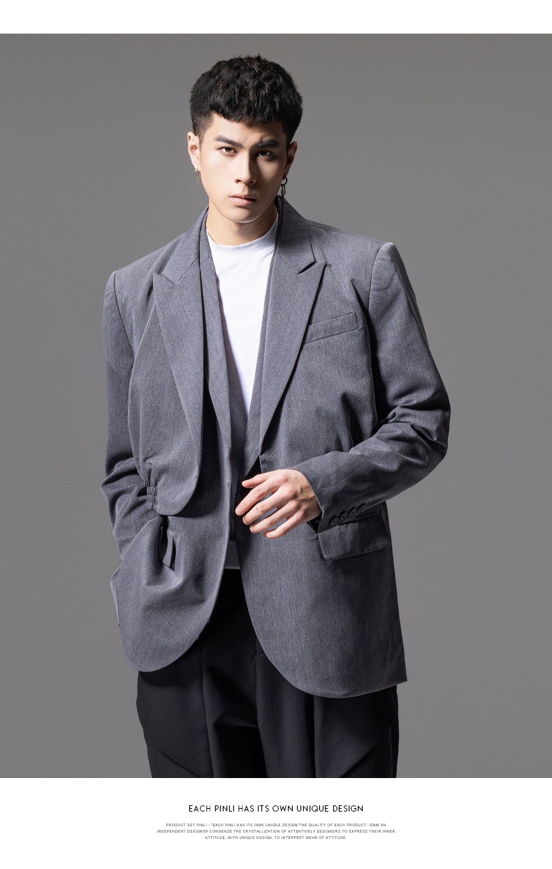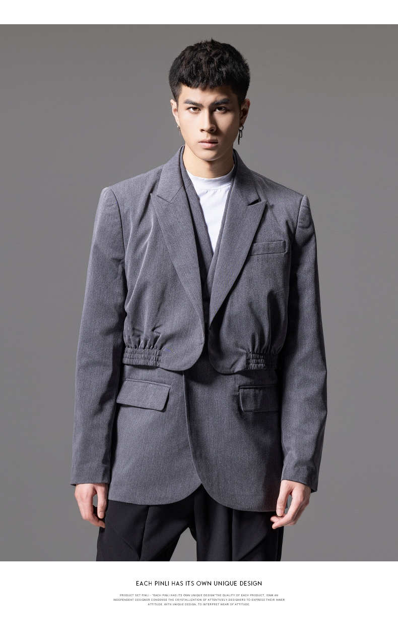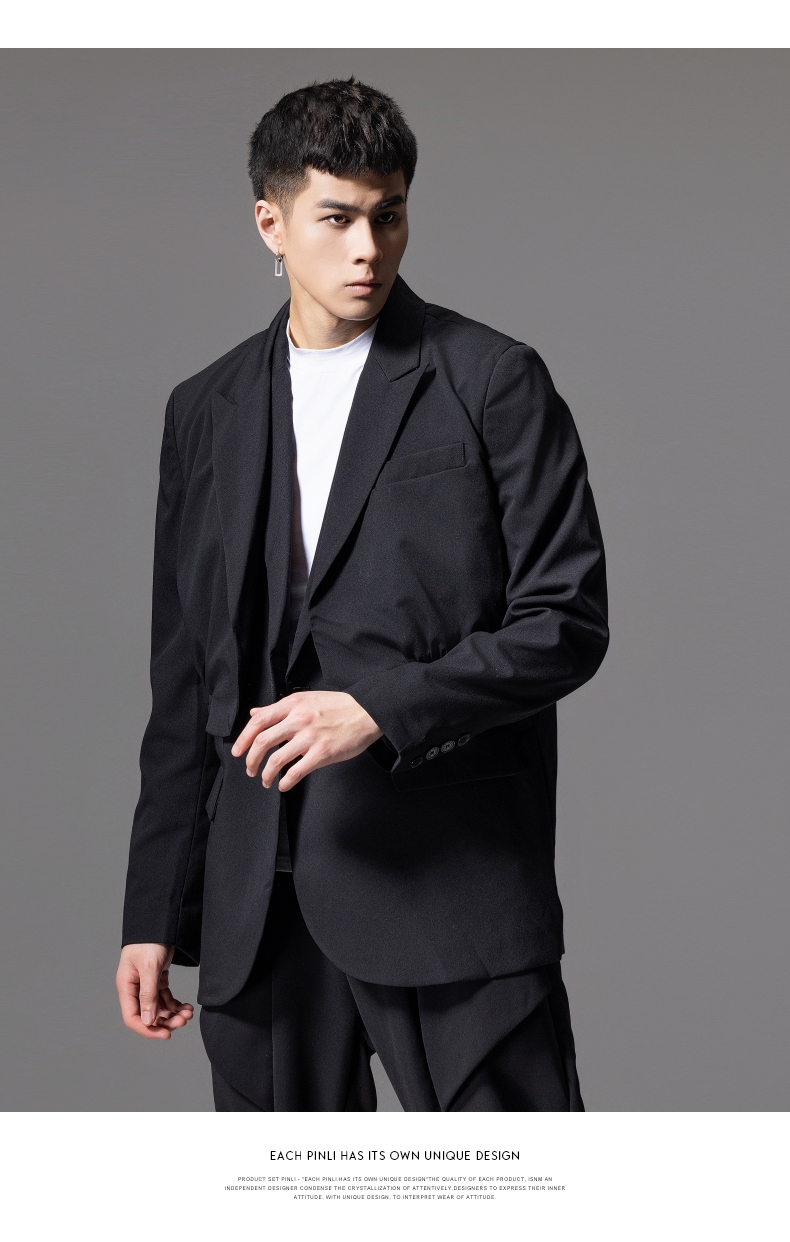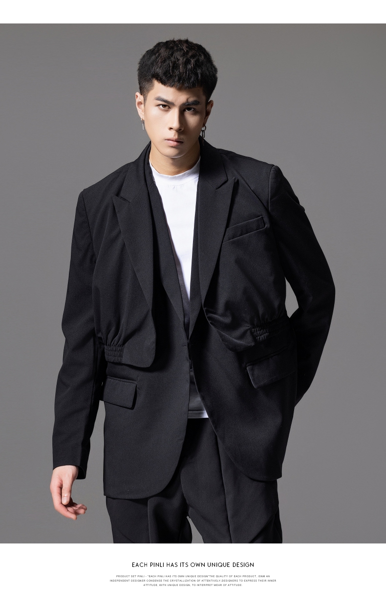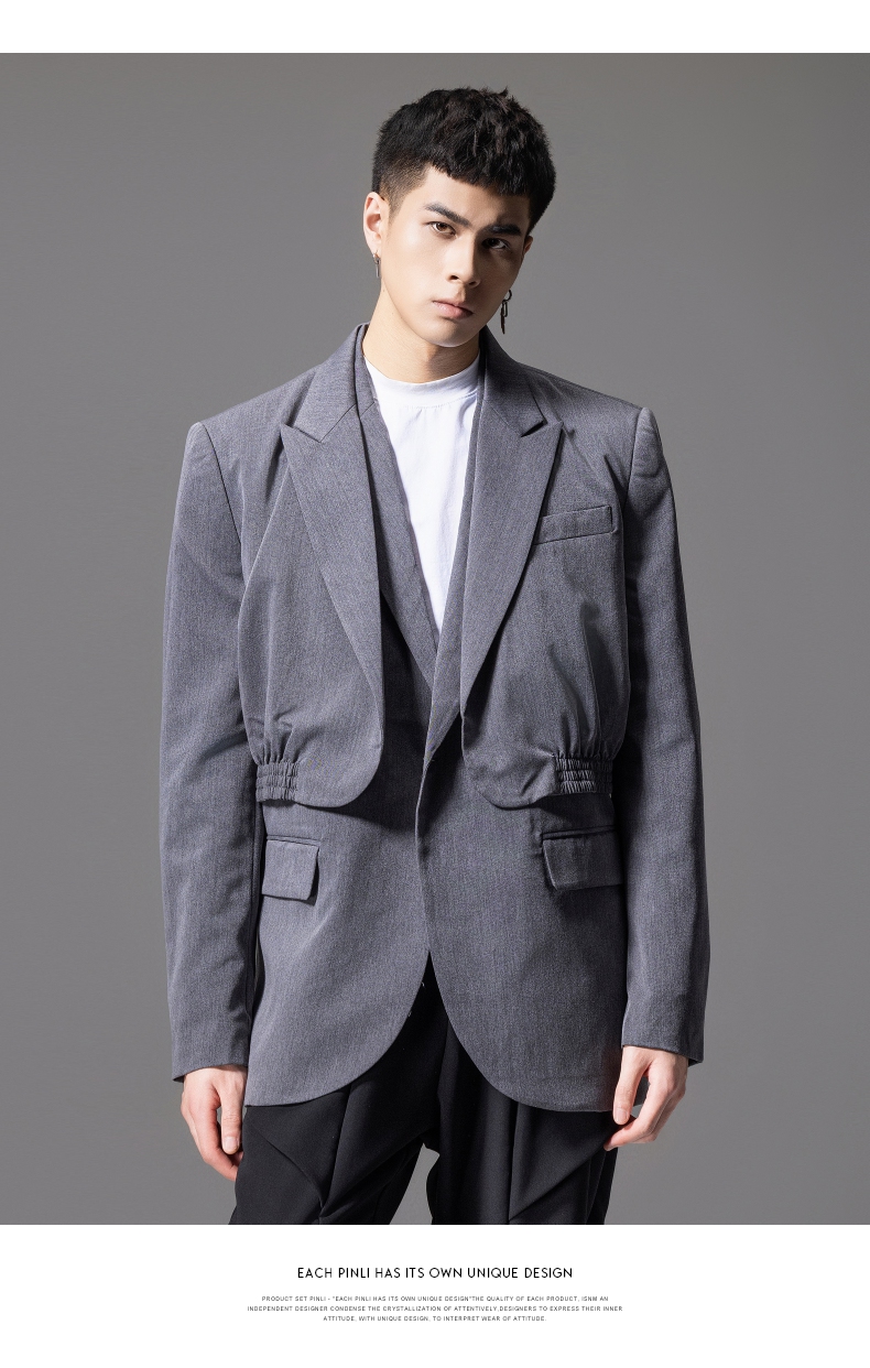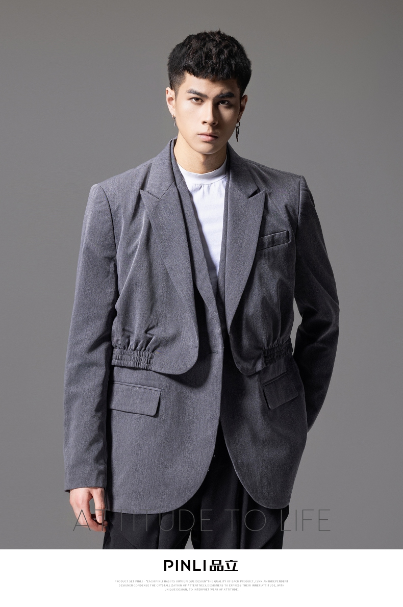 PINLI品立裁魂秋季新款假两件西服外套潮牌时尚男士休闲西装BC241206064