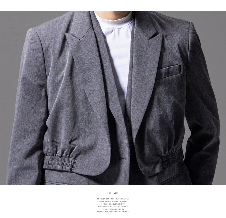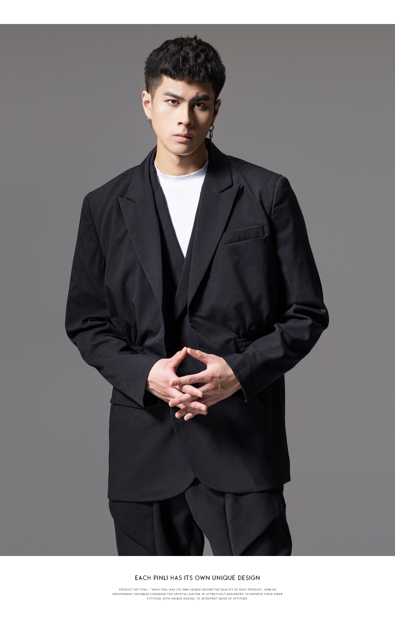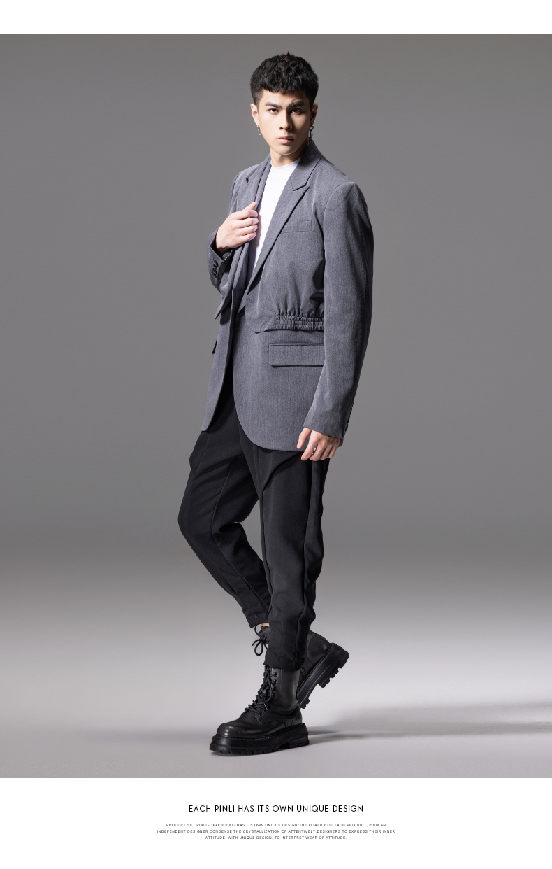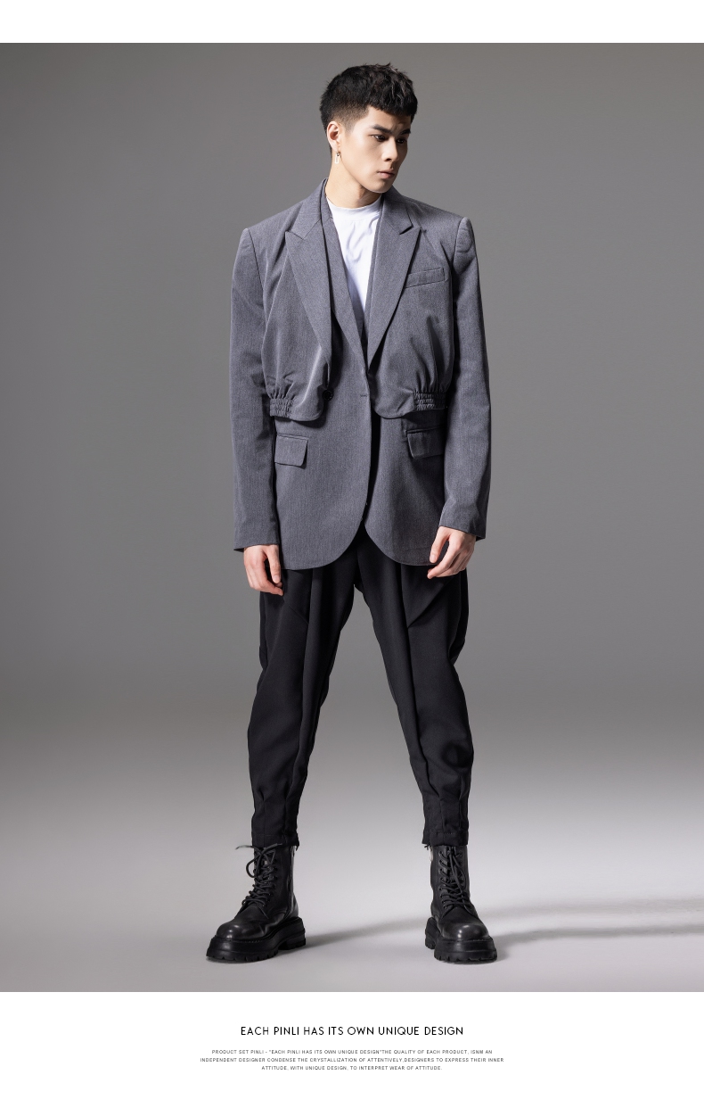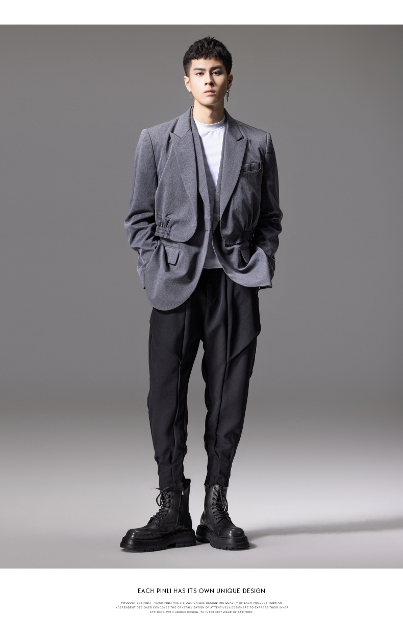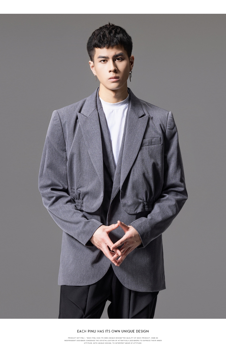 PINLI品立裁魂秋季新款假两件西服外套潮牌时尚男士休闲西装BC241206064