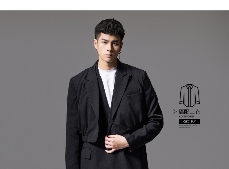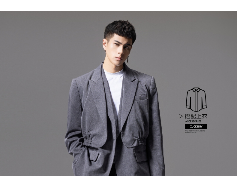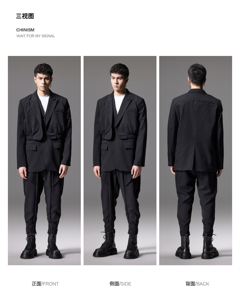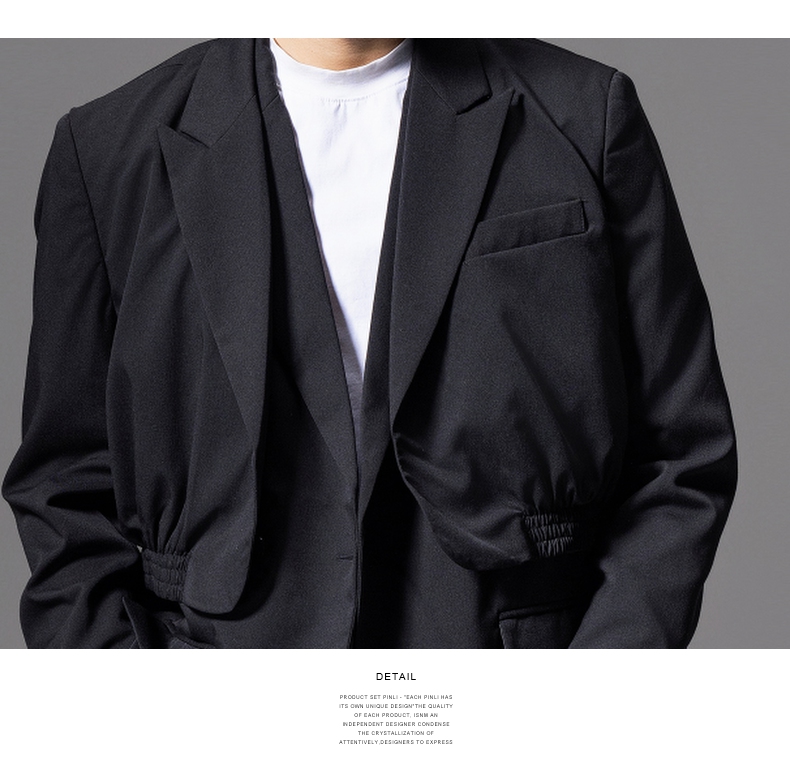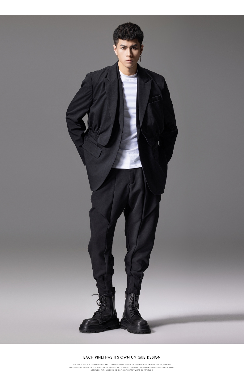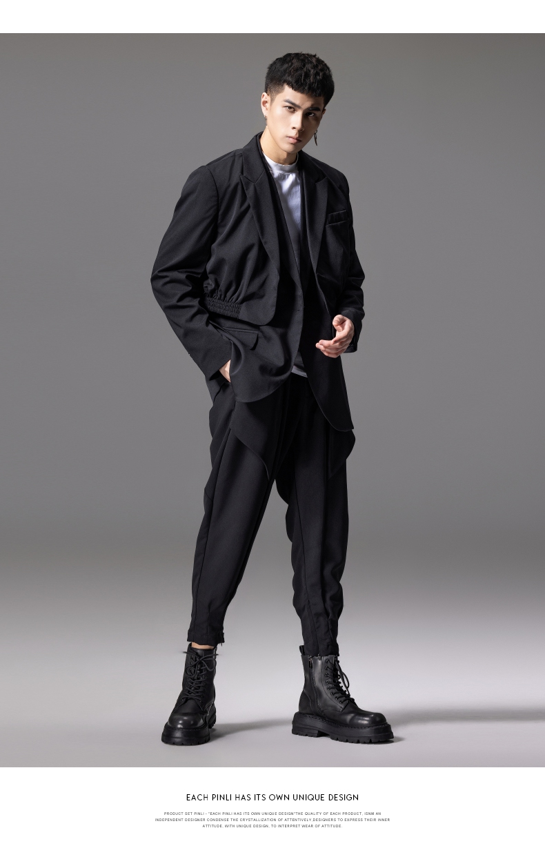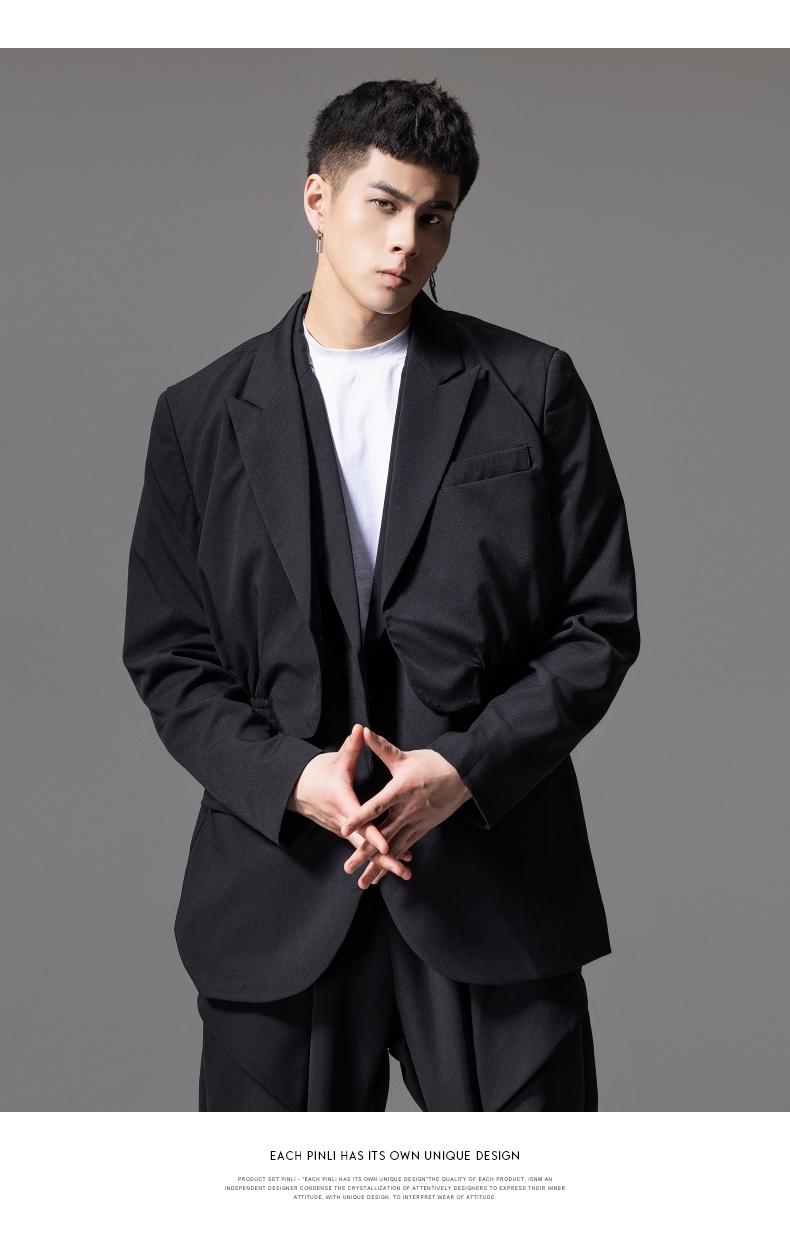 PINLI品立裁魂秋季新款假两件西服外套潮牌时尚男士休闲西装BC241206064