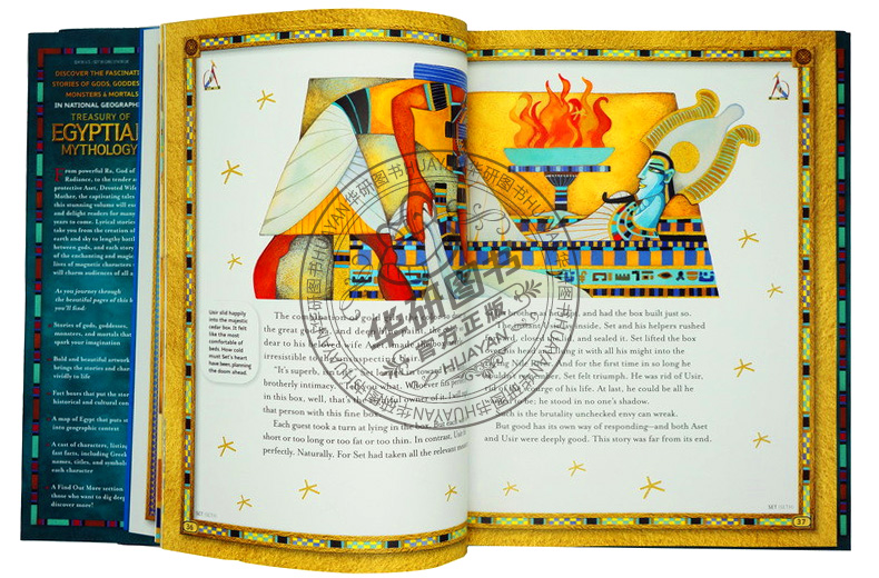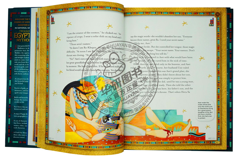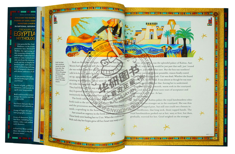 Treasury of Egyptian Mythology《美国国家地理埃及神话故事》由全球非营利科学与教育组织之一——美国国家地理学会精心出品,获奖作家唐娜·乔·纳波利和获奖插画家克里斯蒂娜·巴利特携手创作,整部书就是一件令人惊叹的艺术品。