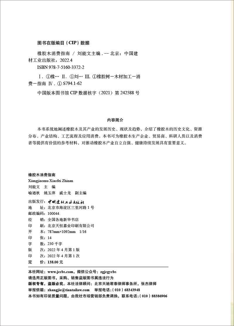 本书系统地阐述橡胶木及其产业的发展历史、现状及趋势,介绍了橡胶木的历史文化、资源分布、产业结构、工艺流程及应用消费。本书可为橡胶木生产企业、贸易商、科研人员以及消费者等提供有价值的参考材料,对推动橡胶木产业自立自强、健康持续发展具有重要意义。