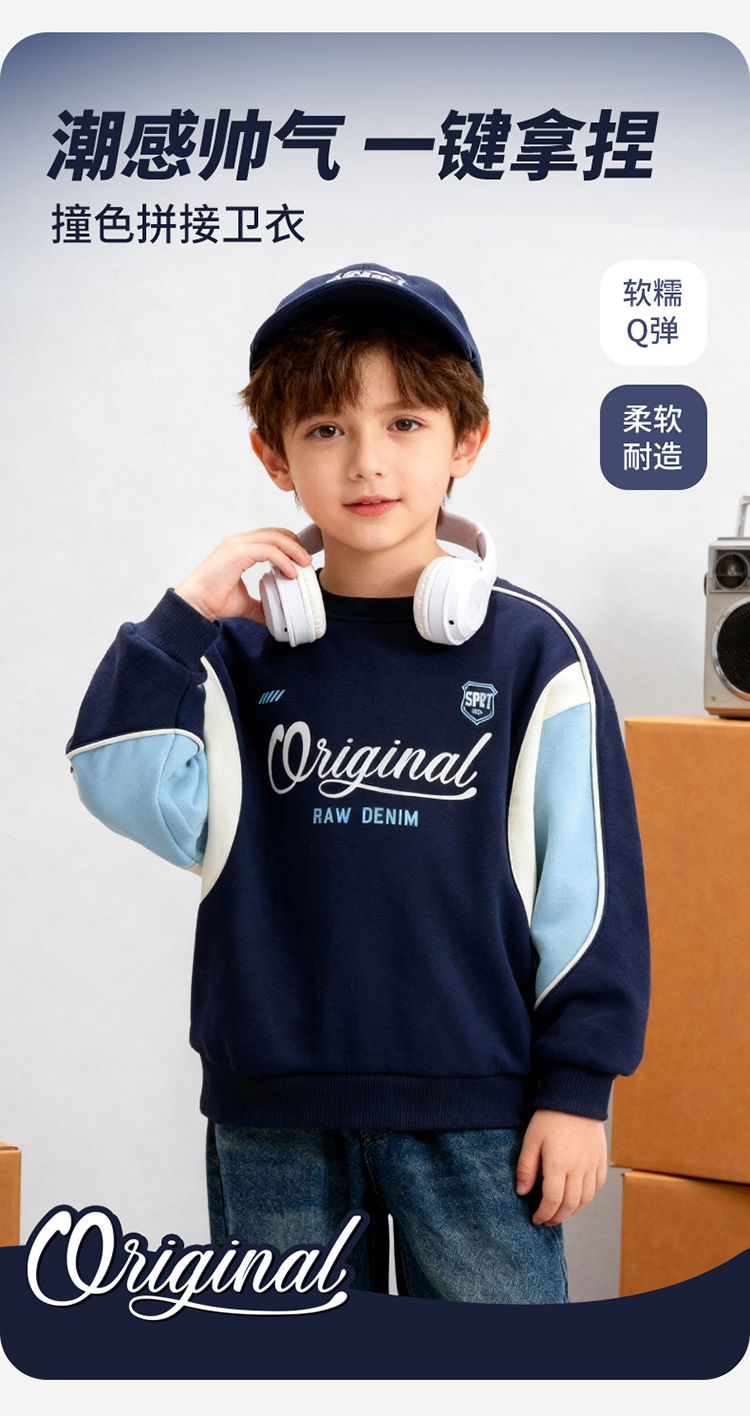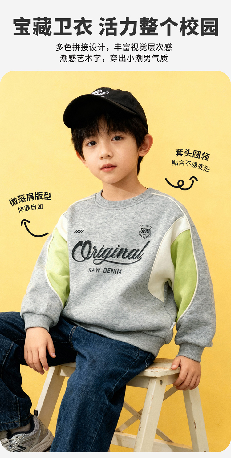 贝贝怡男童套头卫衣休闲衣服2026春季新款上衣中大童打底韩版童装ZB1FS011