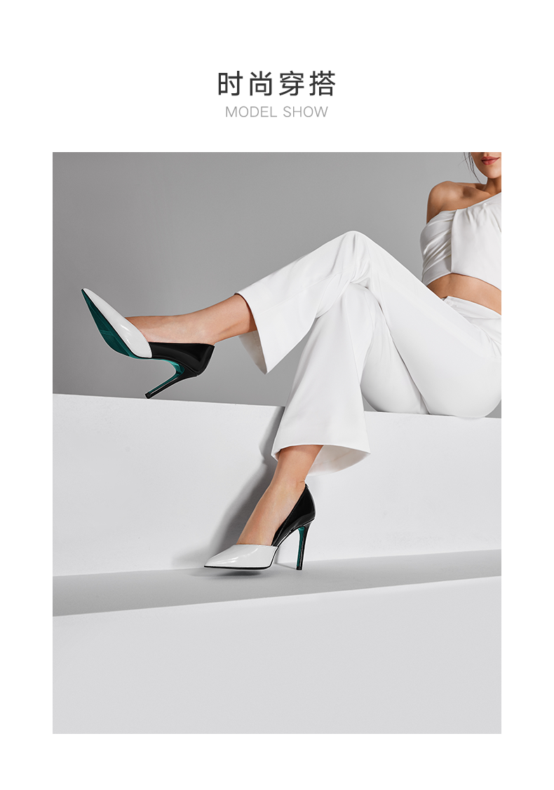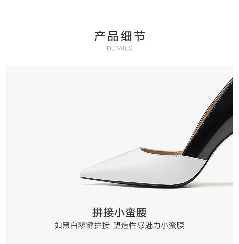 【2F】【肖邦夜曲】莎莎苏2022年秋新款尖头细高跟拼色气质高跟鞋女单鞋