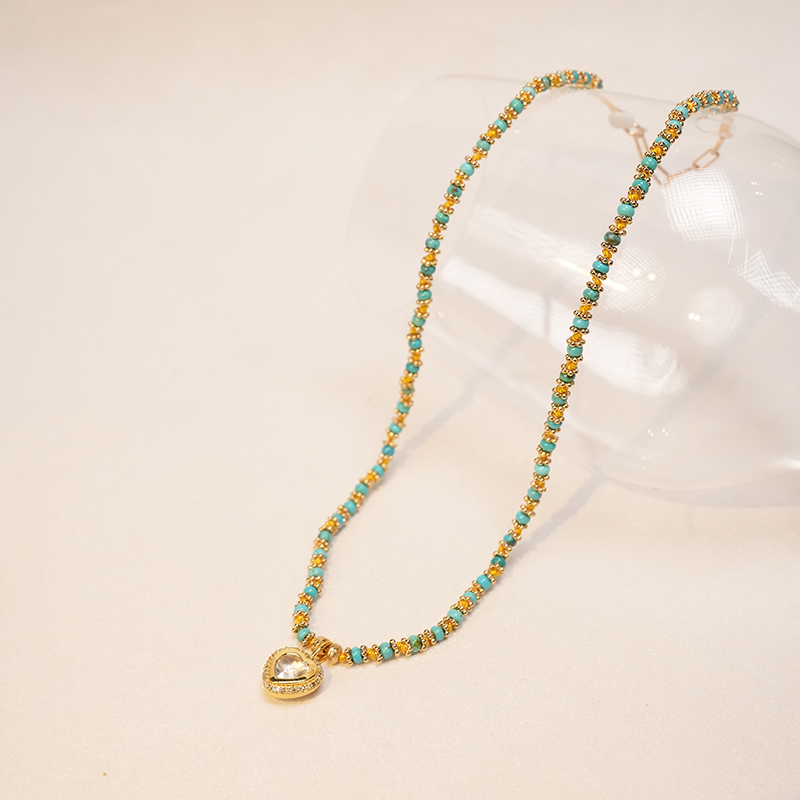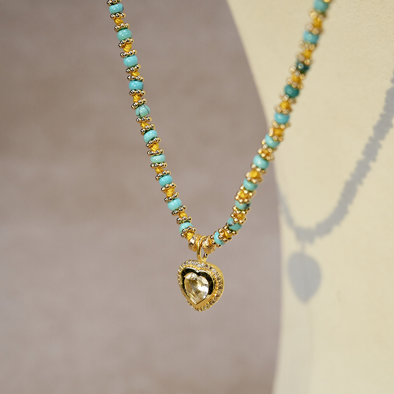 订购8周到|Tityaravy-GiniK-浅绿色紫水晶 心形 吊坠 串珠 项链[法国设计师]