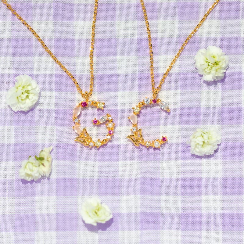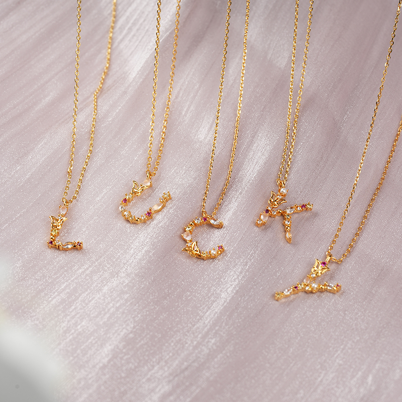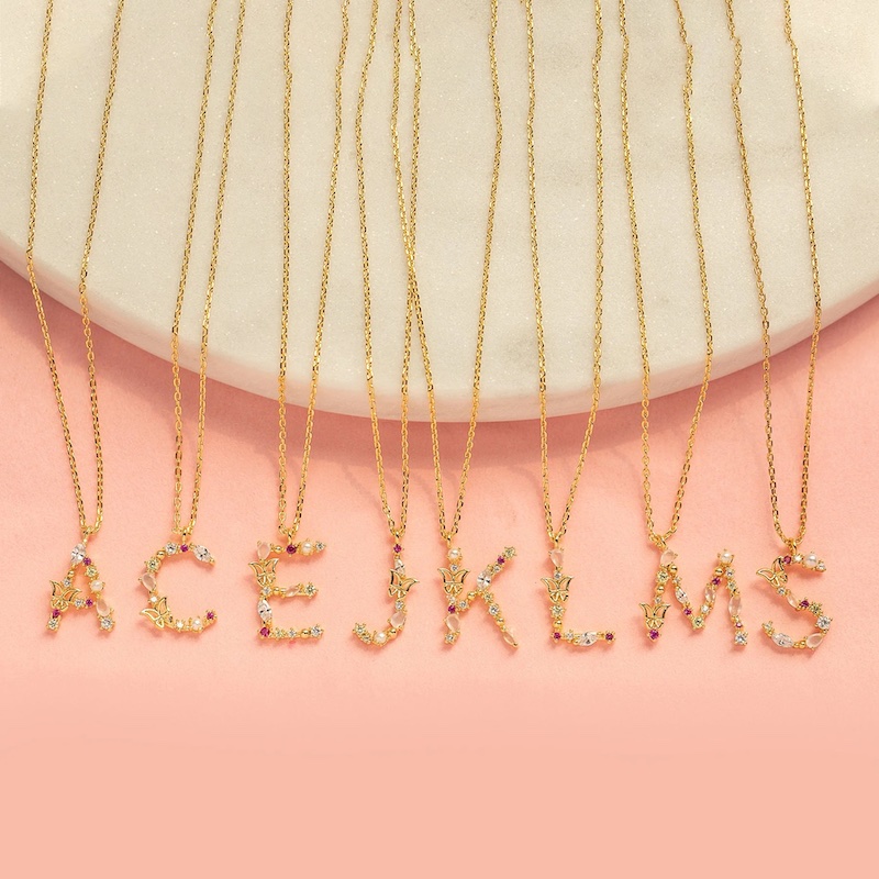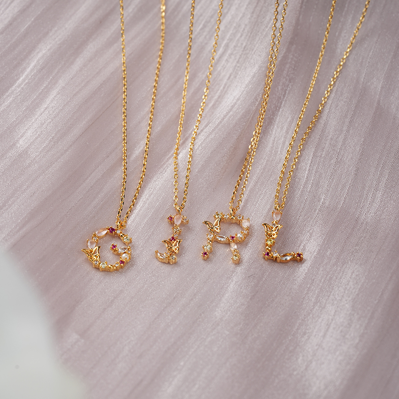 北京仓|Girls Crew-Flutterfly Stone Initial-金色 蝴蝶与宝石 字母 项链[美国设计师]