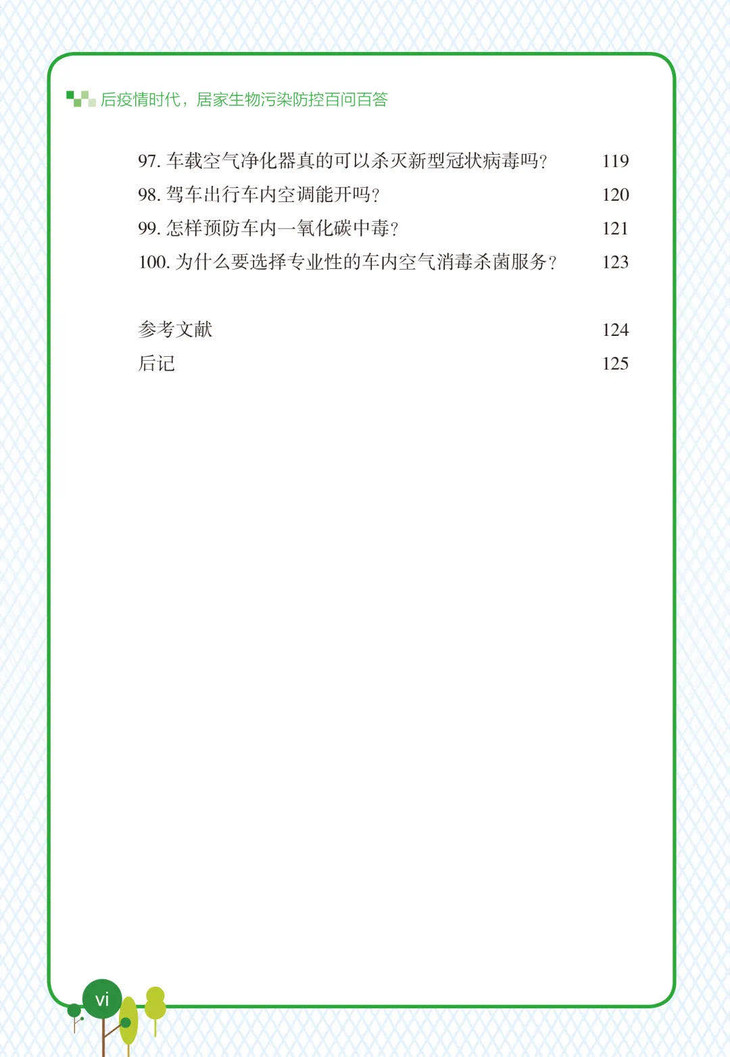 本书可作为新冠肺炎疫情防控的科普读物,也可作为疫情后人们家居生活和装饰装修的参考读物,同时对从事室内车内环保行业和室内装饰装修行业的朋友们,也有一定的参考价值。