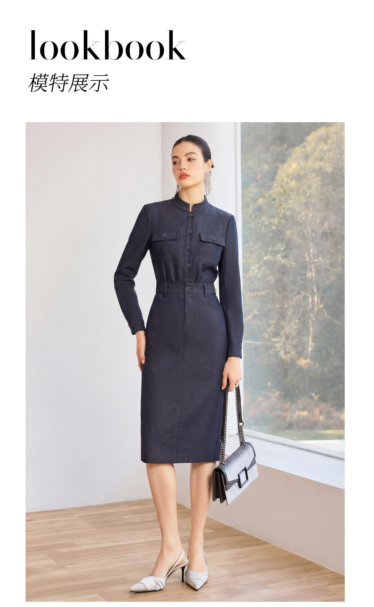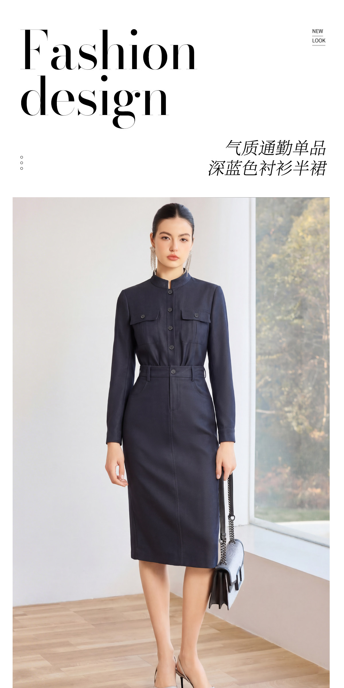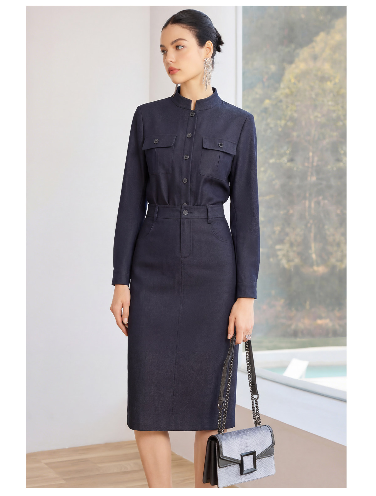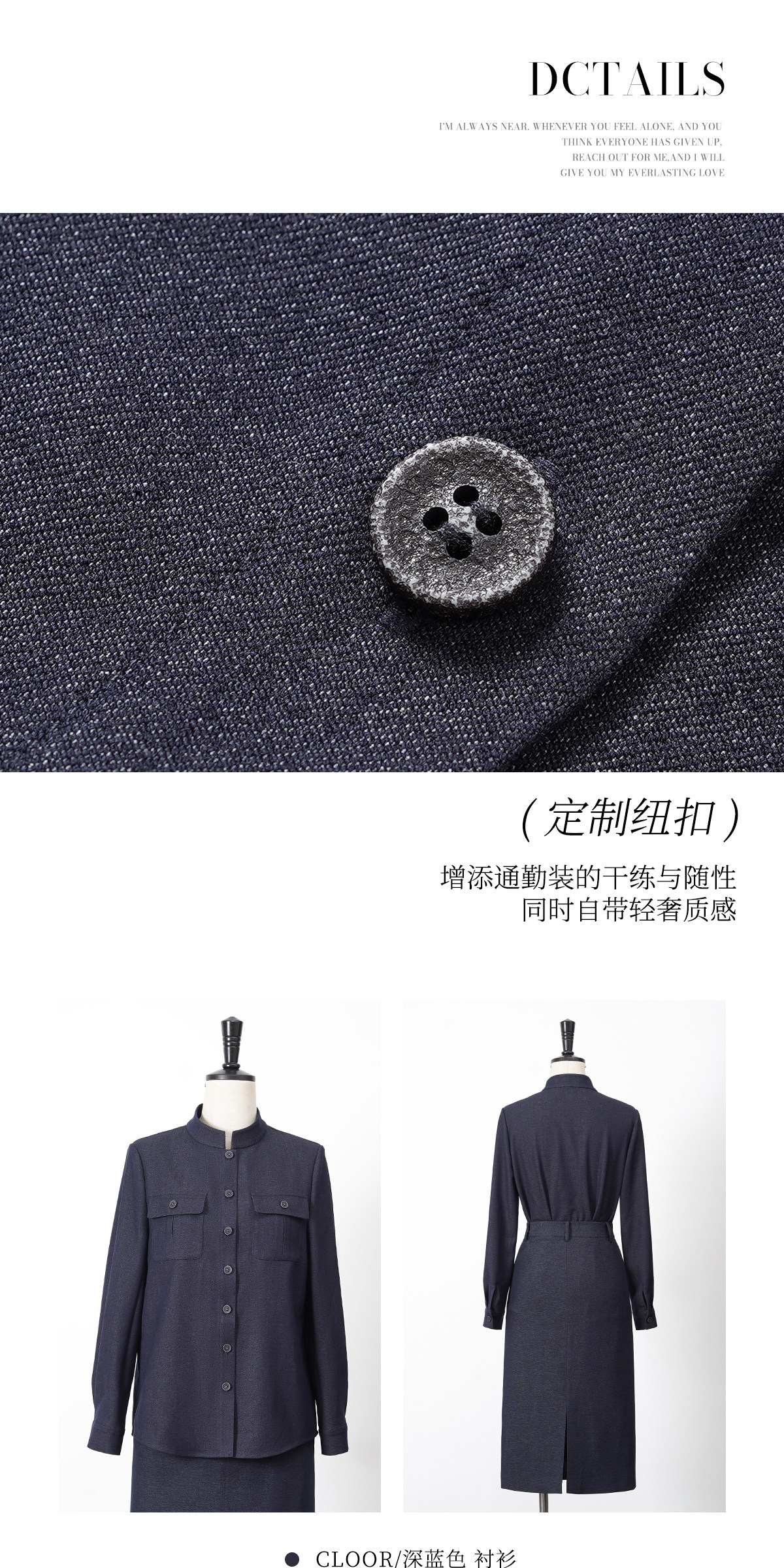艾尚臣工装风长袖衬衫套裙女春季时尚牛仔蓝职业装优雅半裙两件套