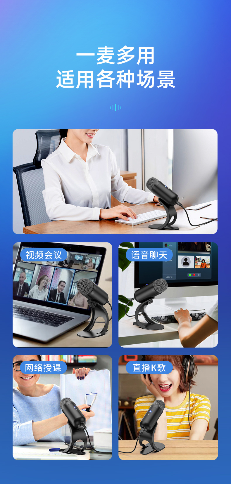 严选【防风降噪直播麦克风K6 USB版黑色】K歌电脑USB有线话筒游戏会议录音麦